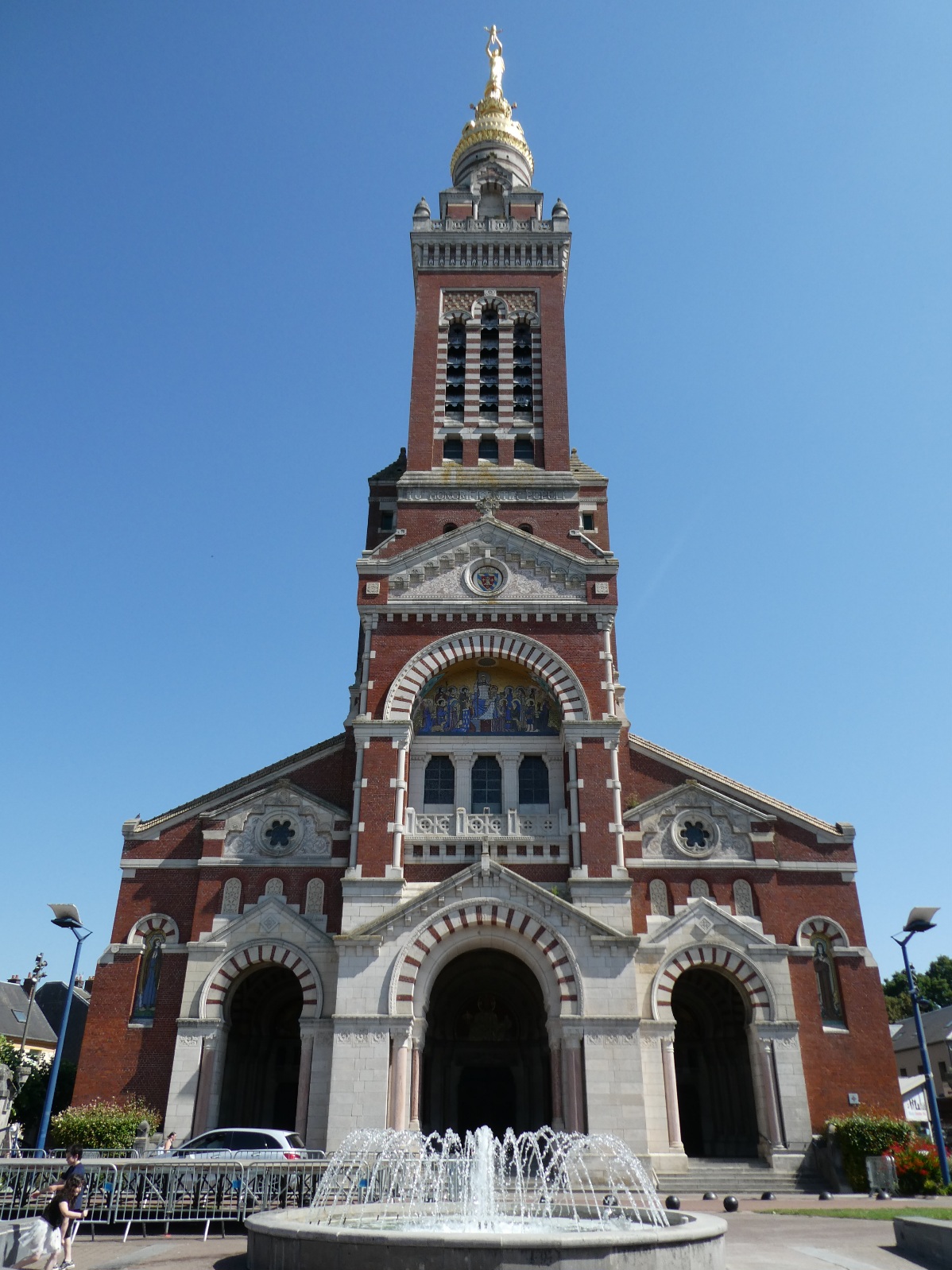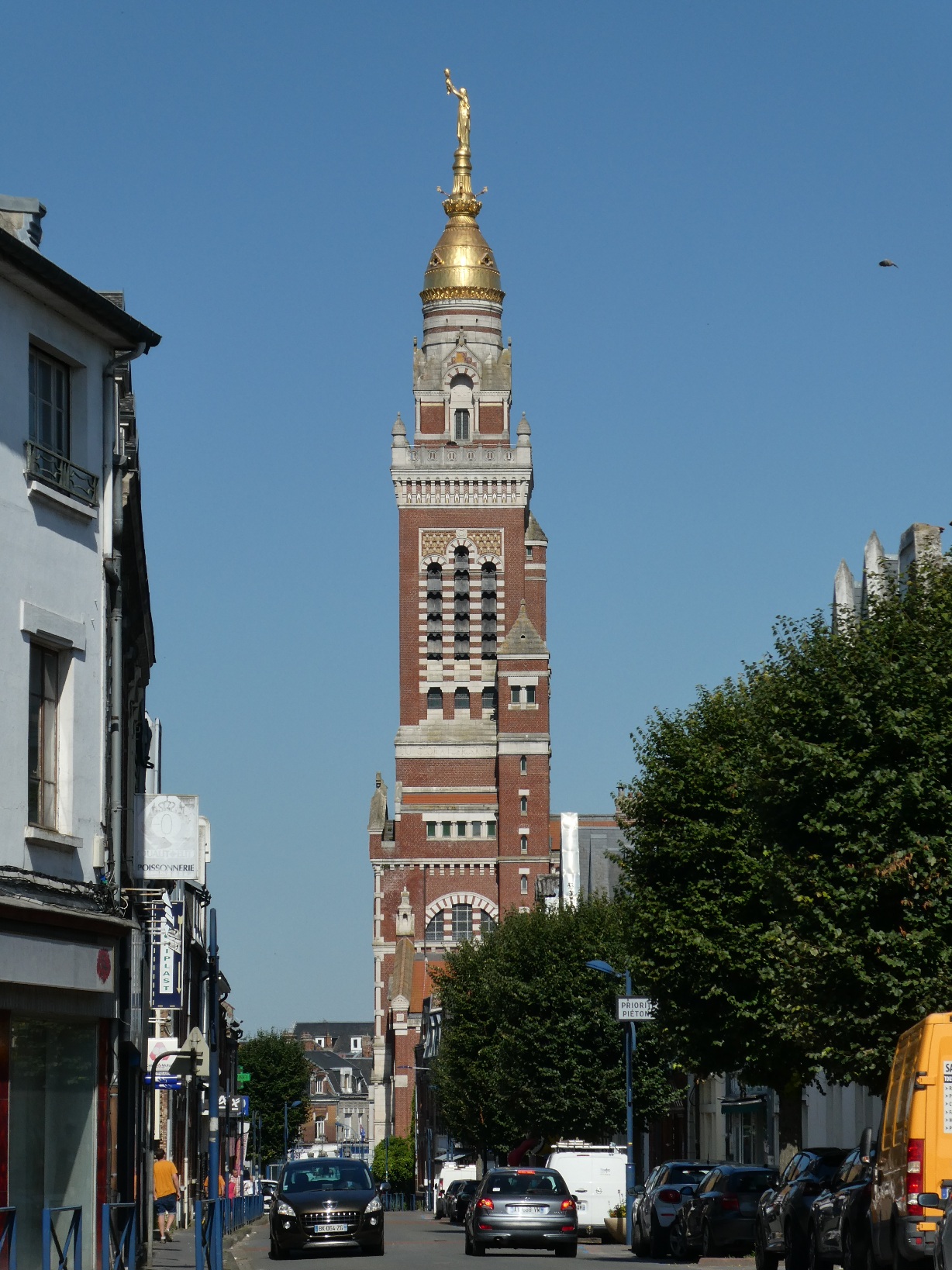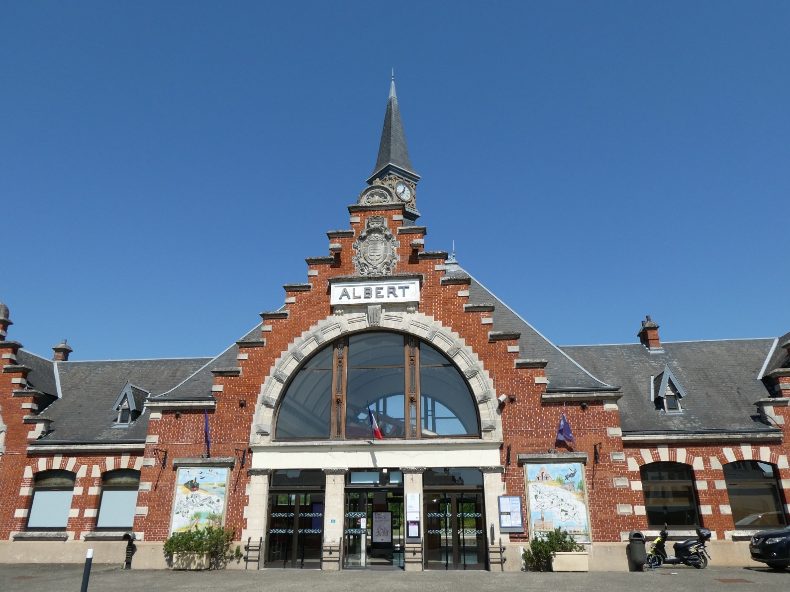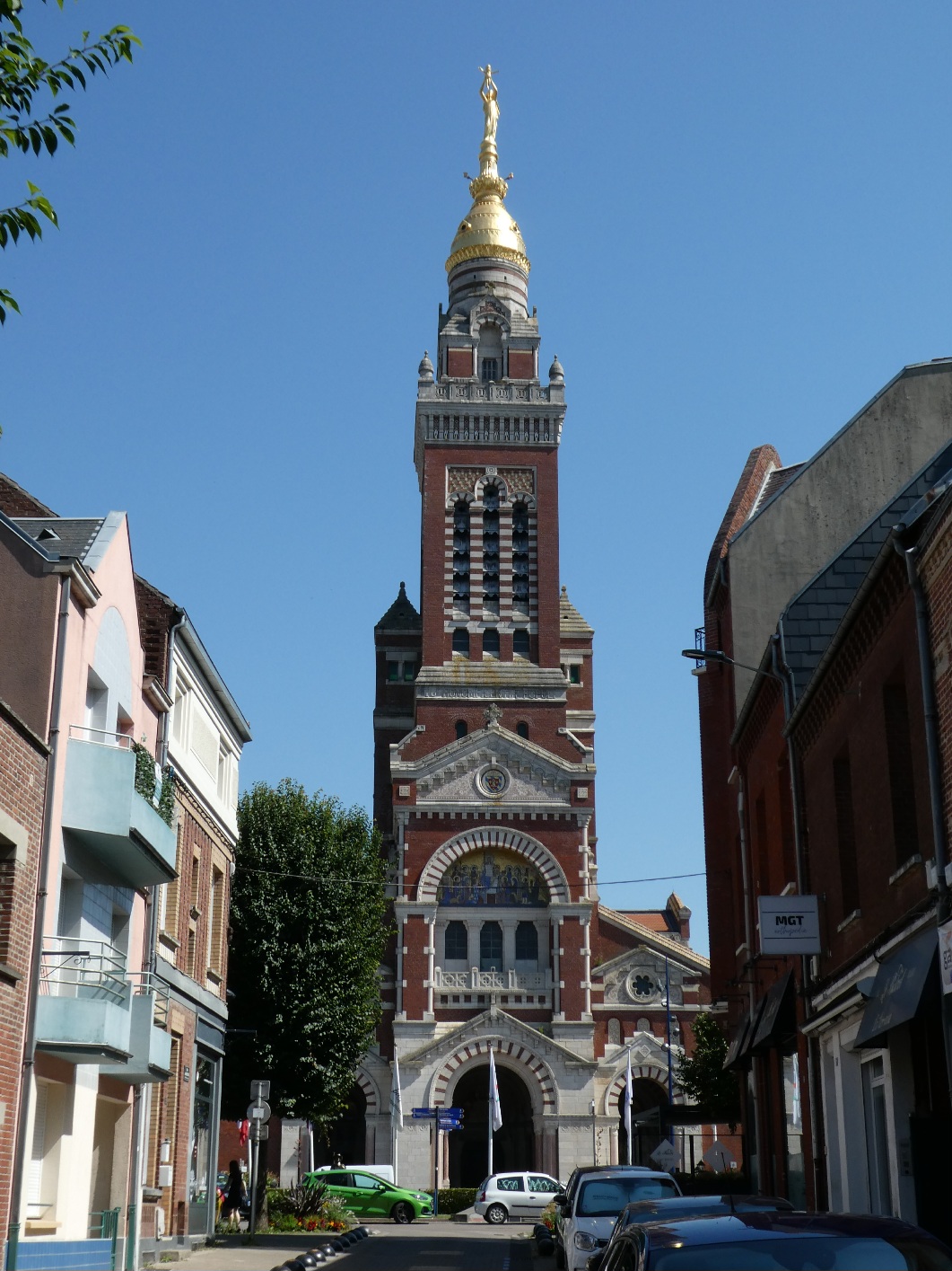 In de 11e eeuw vond een schaapherder een Mariabeeld, dankzij één van zijn schapen. De kerk die werd gesticht voor dat beeld in Albert draagt dan ook de naam “Onze Lieve Vrouwe van de schaapherders”. Het verhaal is in een glas-in-loodraam vereeuwigd. Sinds de 18e eeuw is deze kerk een basiliek, door de toenmalige paus werd de plek het “Lourdes van het noorden” genoemd. Gezien de bezoekersaantallen is het dat zeker niet, maar het is wel fraai. In de Eerste Wereldoorlog werd het Mariabeeld op de top van de kerktoren geraakt en kwam daardoor horizontaal te hangen. Het verhaal ging dat de oorlog zou eindigen als het beeld naar beneden viel. Dat gebeurde in april 1918 (voor de niet-geschiedkundigen: de Eerste Wereldoorlog eindigde door een wapenstilstand op 11 november 1918). Daarna is er een nieuw verguld beeld opgezet (40.000 vellen bladgoud).