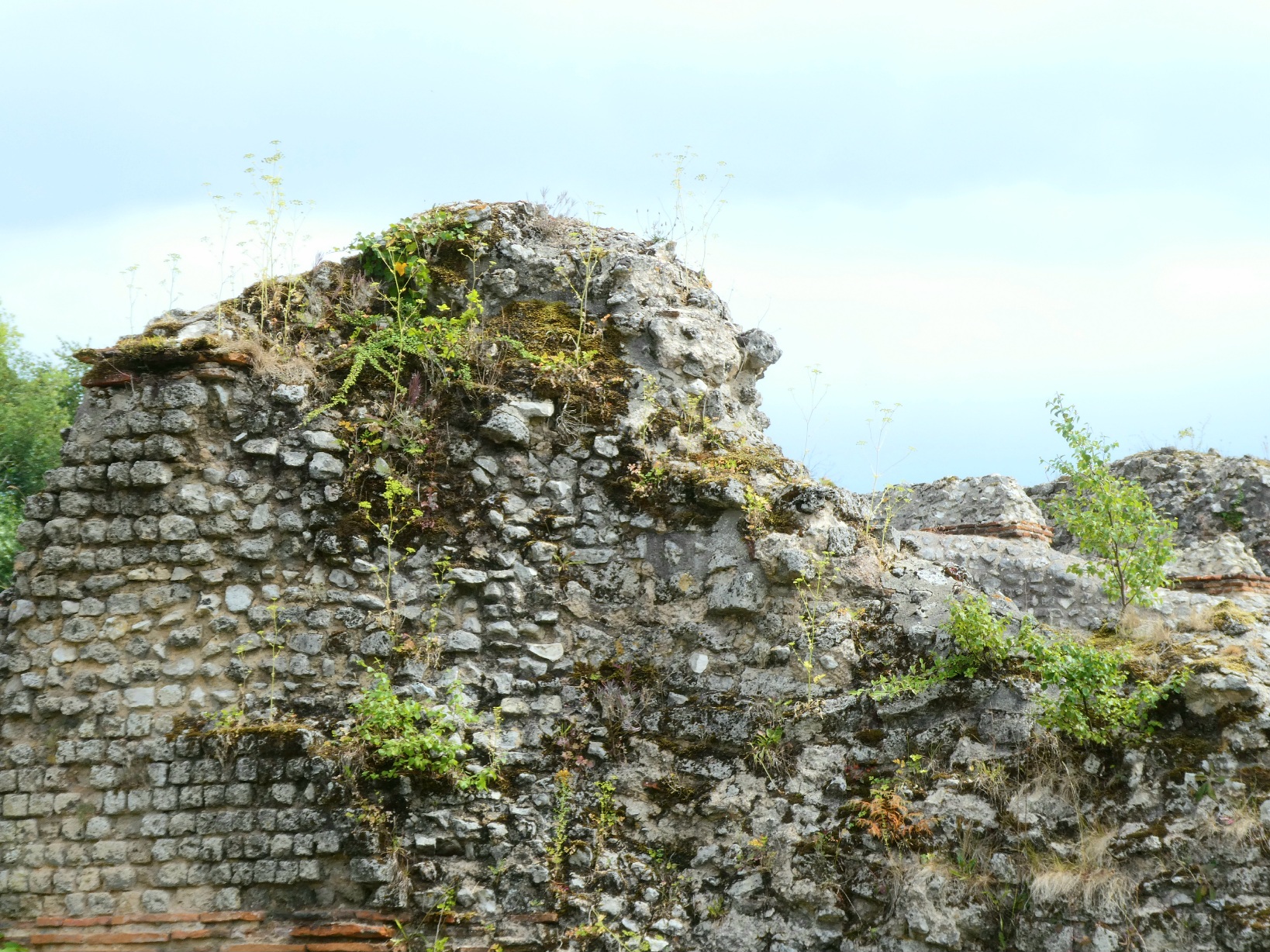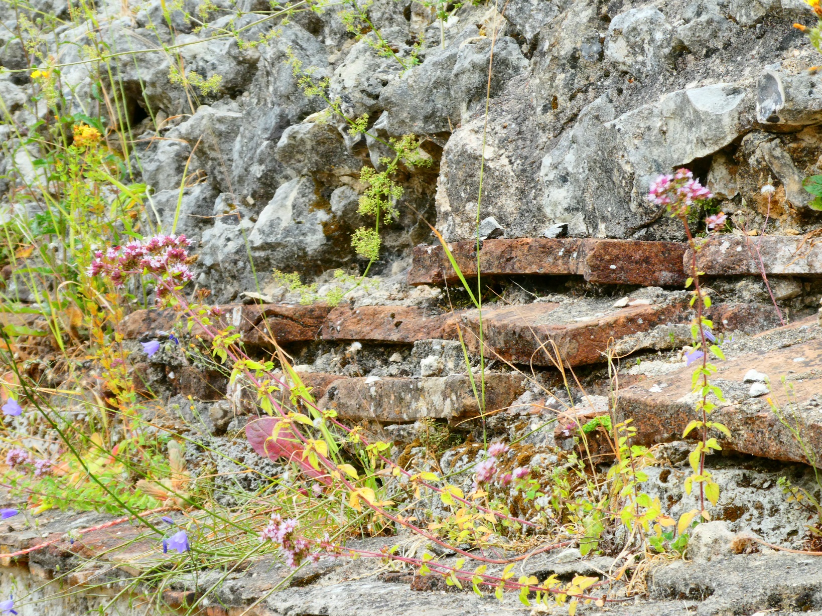 Ondanks alle pogingen om de restanten goed te bewaren, blijft de natuur het overnemen. Schilderachtig.