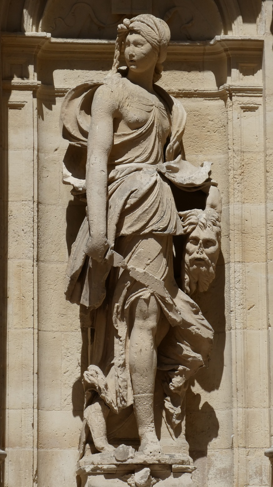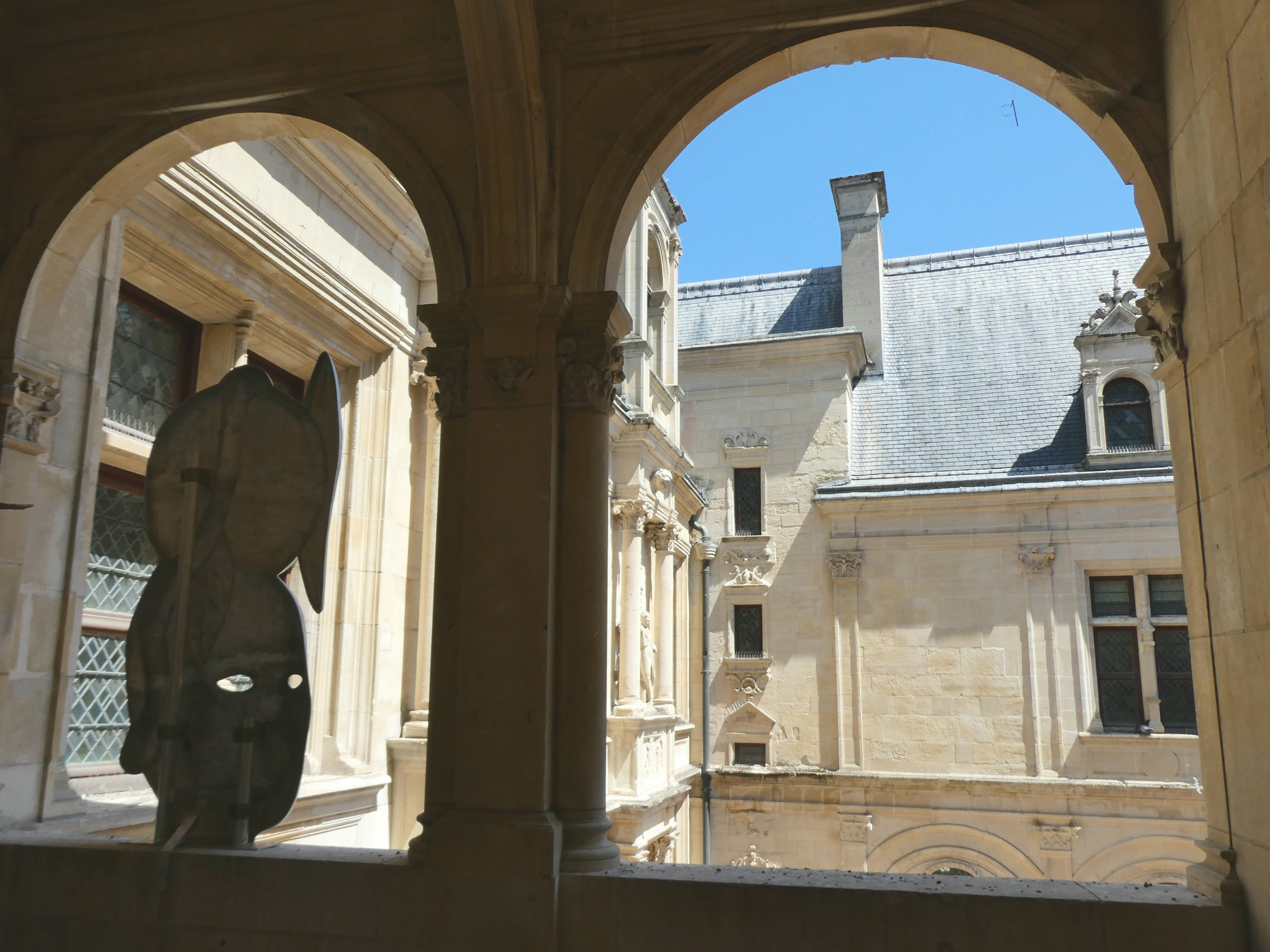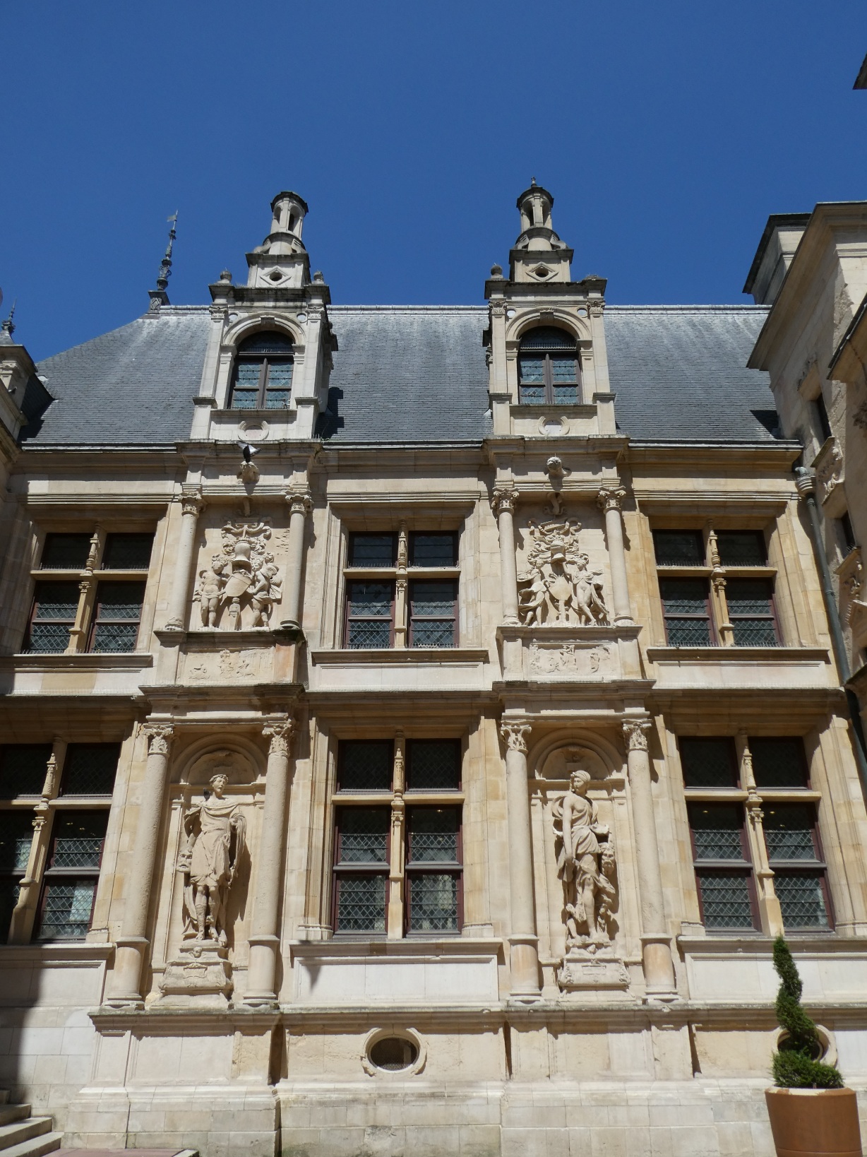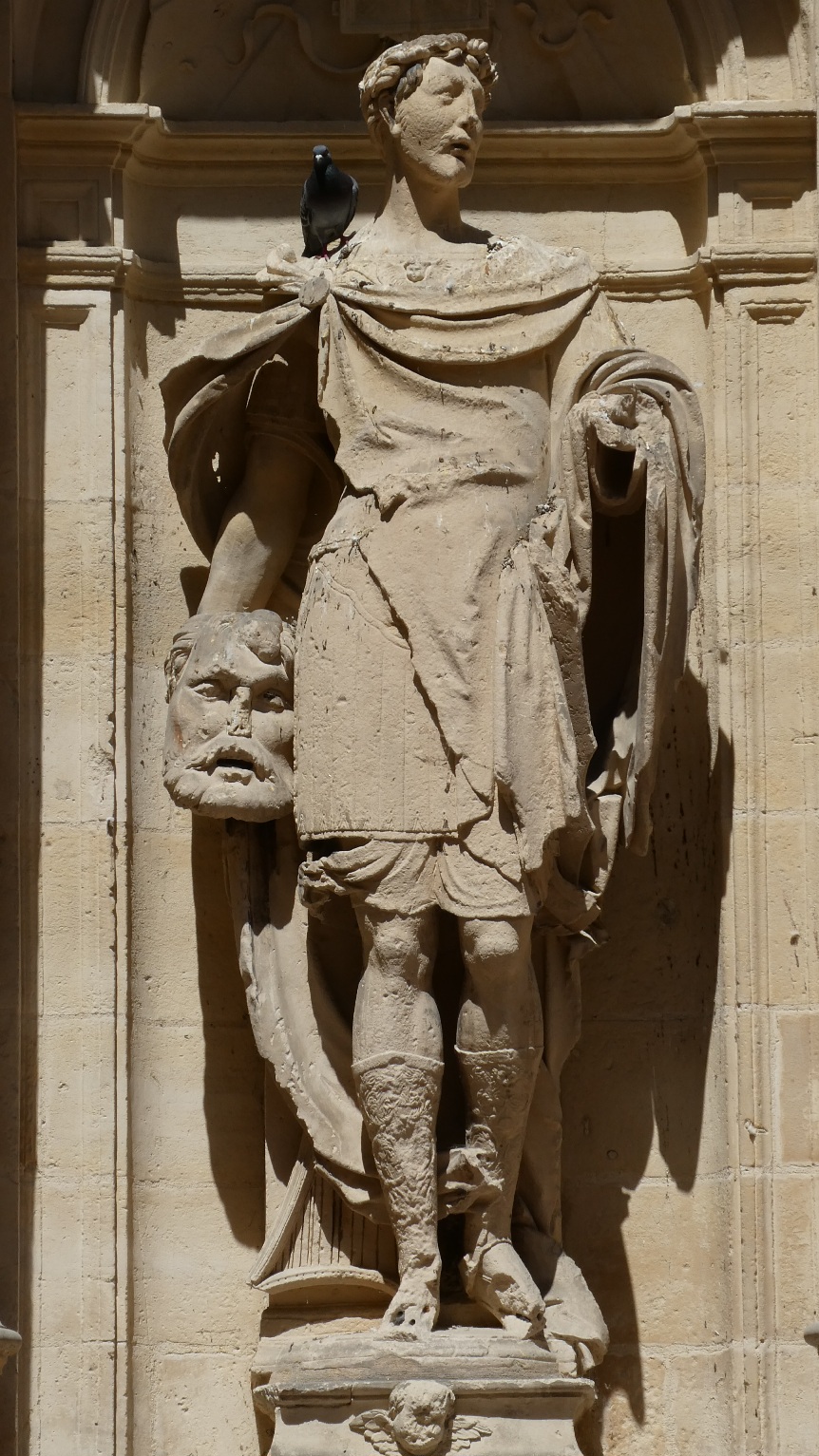 Rond een binnenplaats in het centrum staat het hotel d’Escoville, genoemd naar de rijke graanhandelaar die het liet bouwen. Een mooie wenteltrap leidt naar de hogergelegen etages. De beeldhouwwerken op de binnenplaats zijn een beetje luguber, zowel Judith als David heeft het afgehakte hoofd al in hun hand (voor wie niet zo bijbelvast is, respectievelijk van Holofernes en Goliath). Je vraagt je af wat de opdrachtgever hiermee wilde zeggen tegen zijn bezoek.