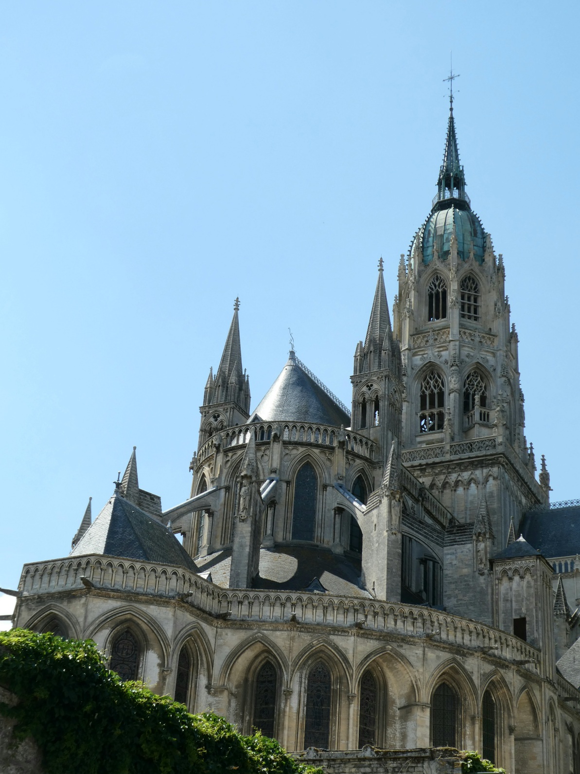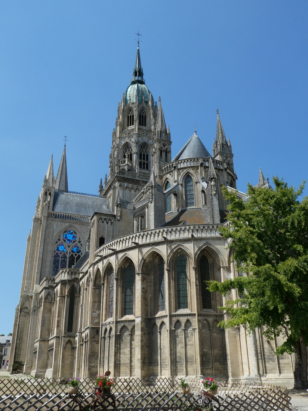 De kathedraal van Onze-Lieve-Vrouwe in Bayeux is een mengelmoes van stijlen door de eeuwen heen gebouwd, versierd, verwoest en gerenoveerd. De buitenkant is voornamelijk gotisch, waarbij ook de romaanse bogen gotisch versierd zijn. De torens zijn van recenter datum dan het schip, en het bovenste deel van de centrale toren is een latere toevoeging nadat een eerdere versie verwoest was.