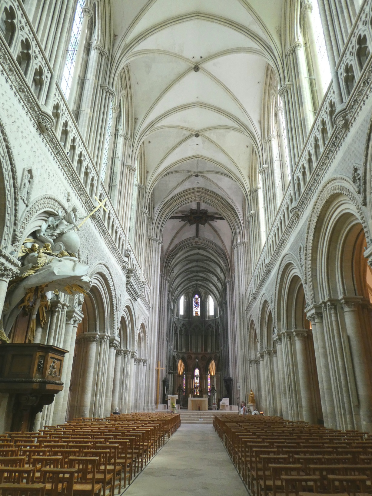 De kathedraal was de oorspronkelijke plek voor het tapijt van Bayeux. Tijdens feestdagen werd het door het hele interieur opgehangen. Maar ook zonder het tapijt is het een indrukwekkend interieur met kleurrijke schilderingen.