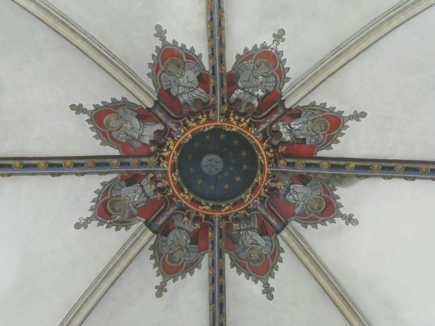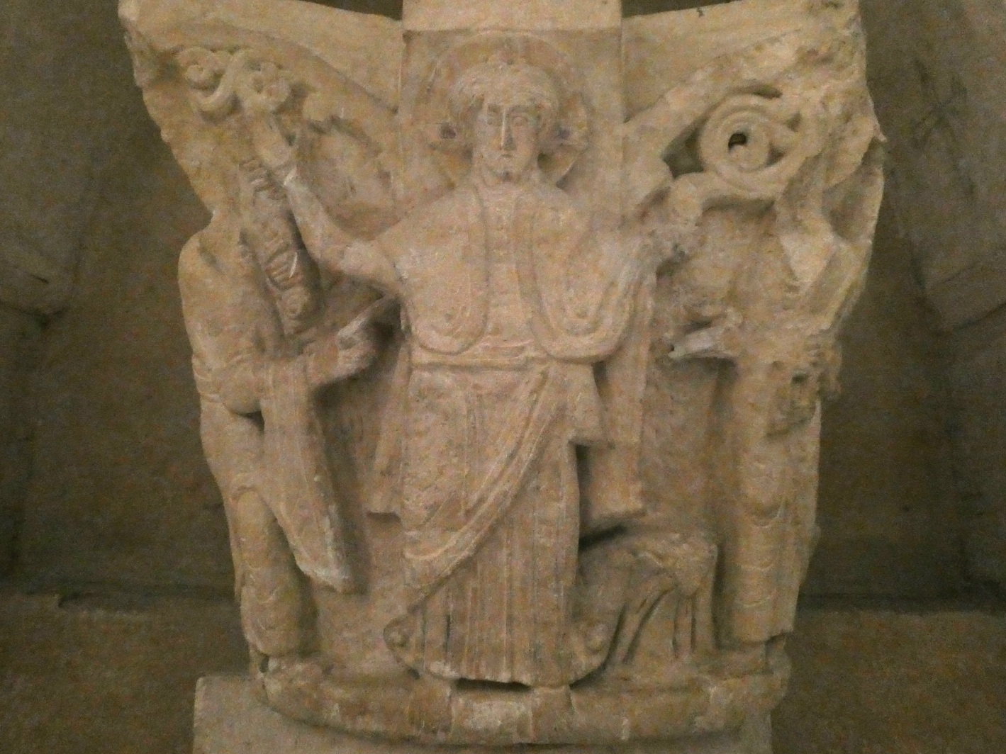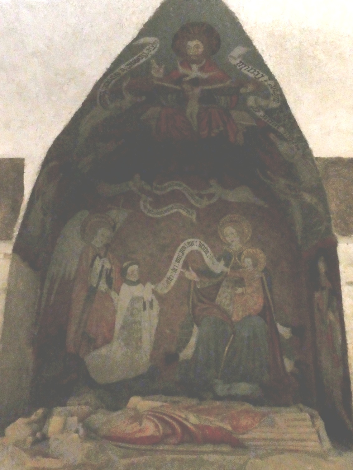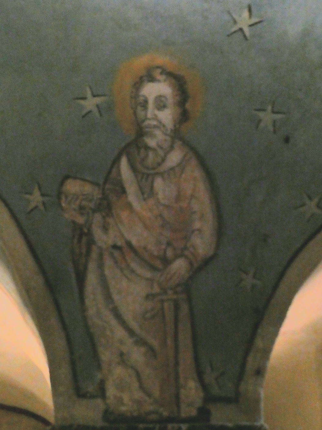 De crypte is wat is overgebleven van de kerk die in 1160 afbrandde. De schilderingen zijn het resultaat van een 15e eeuwse restauratie.