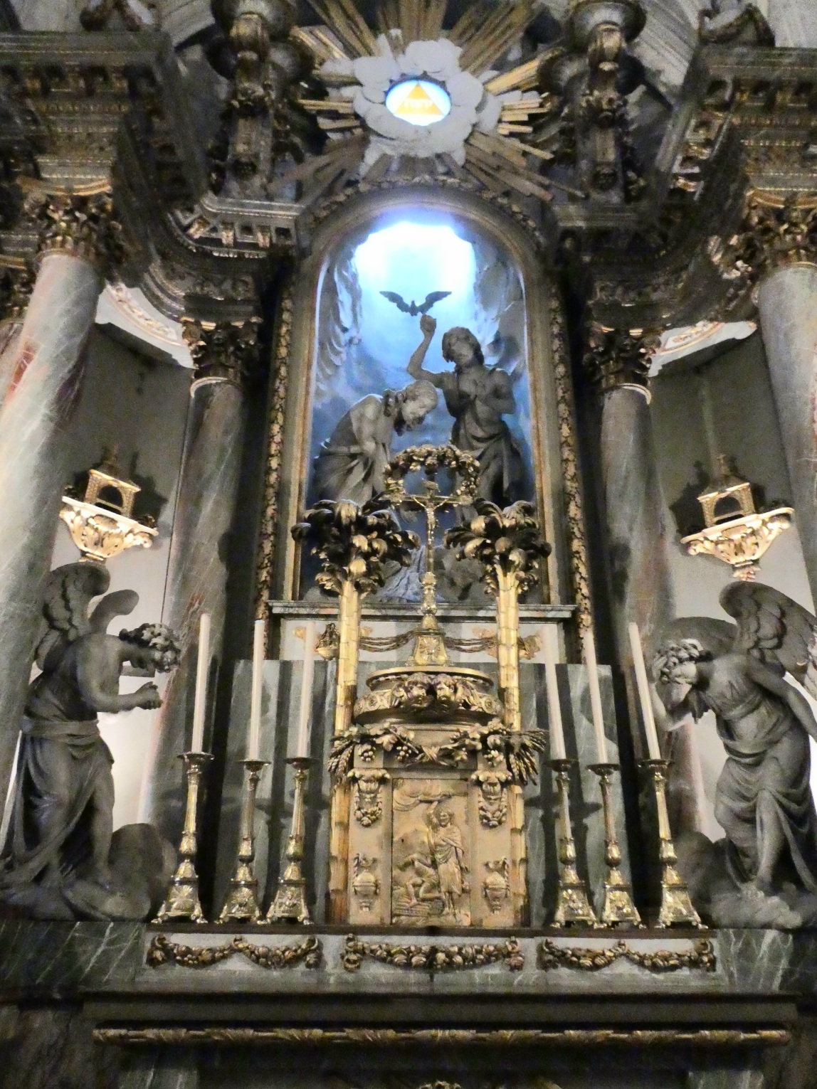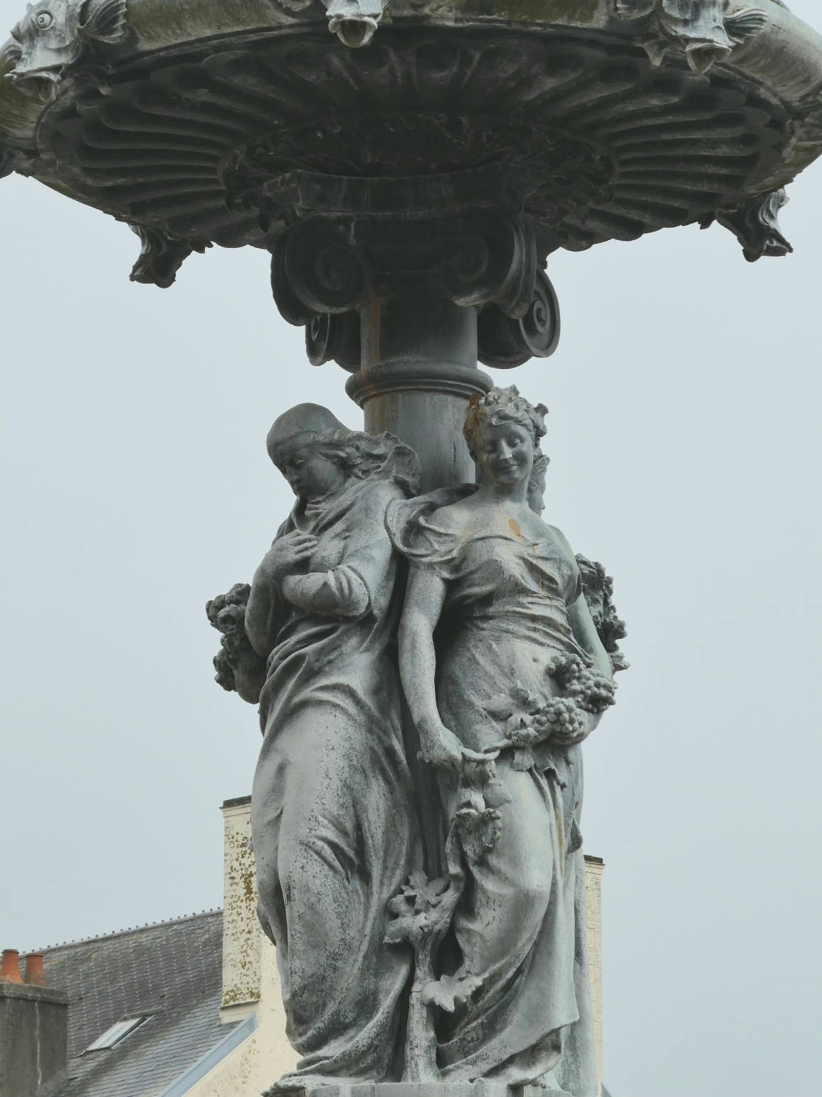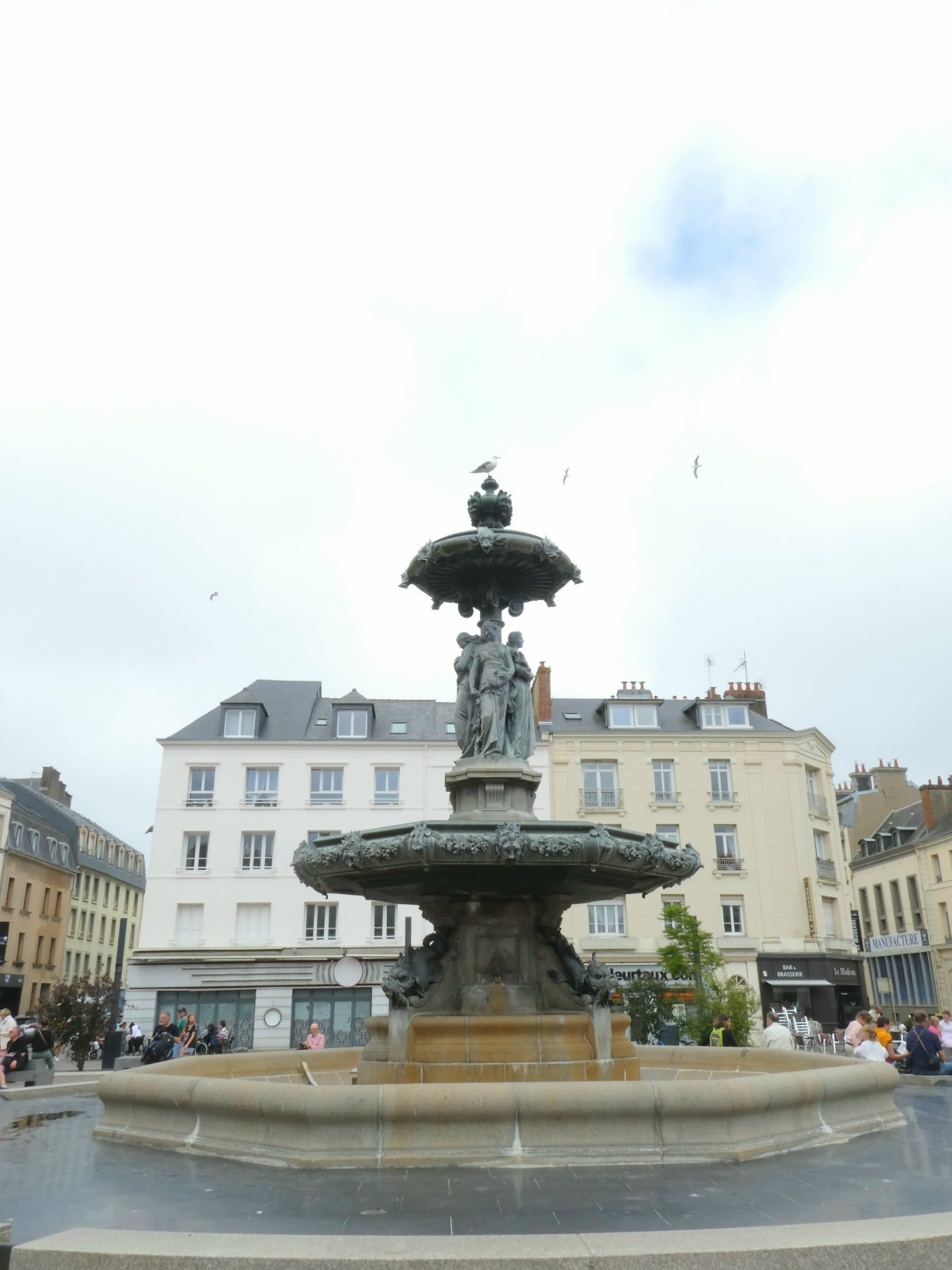 De fontein op het Place de Gaulle toont beelden van de vier jaargetijden. Veel water kwam er niet uit.
