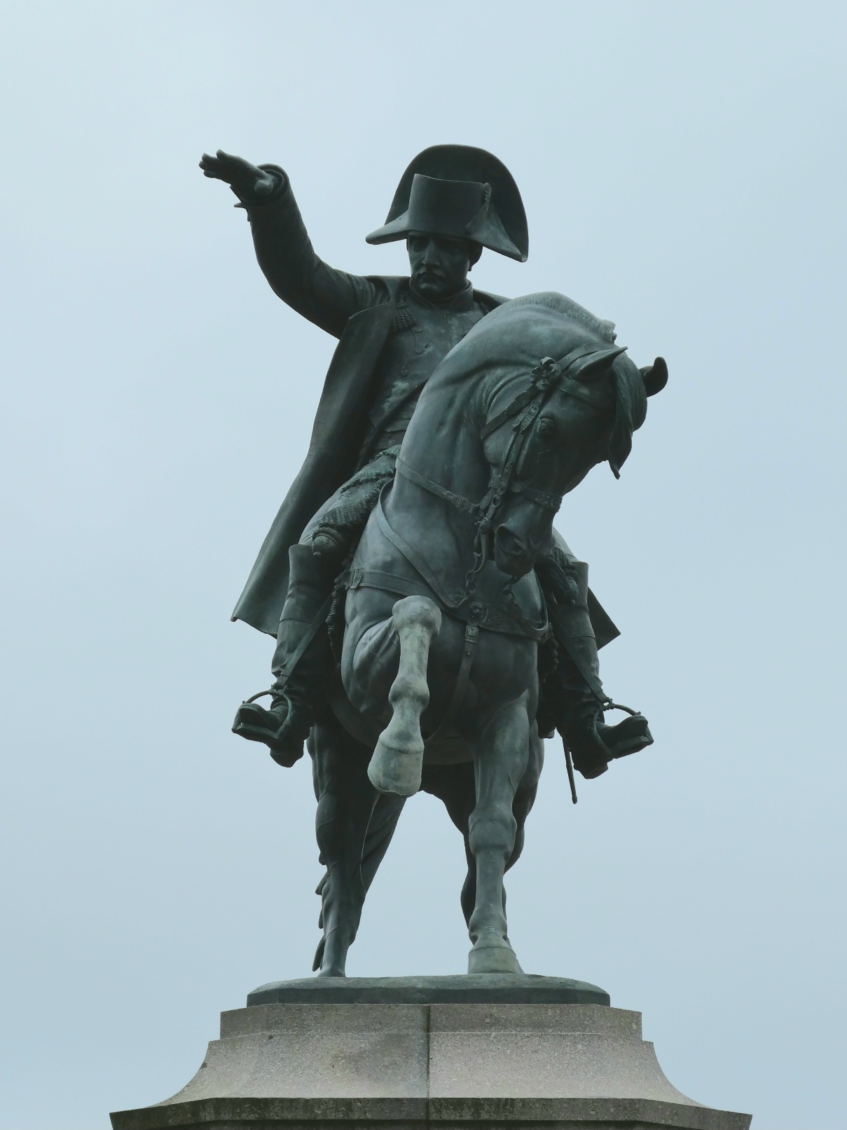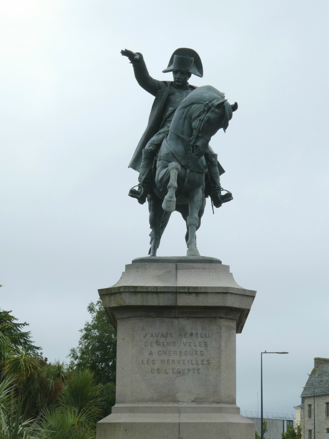 Napoleon wijst naar de militaire haven die hij liet bouwen, waardoor Cherbourg een belangrijke plaats werd.