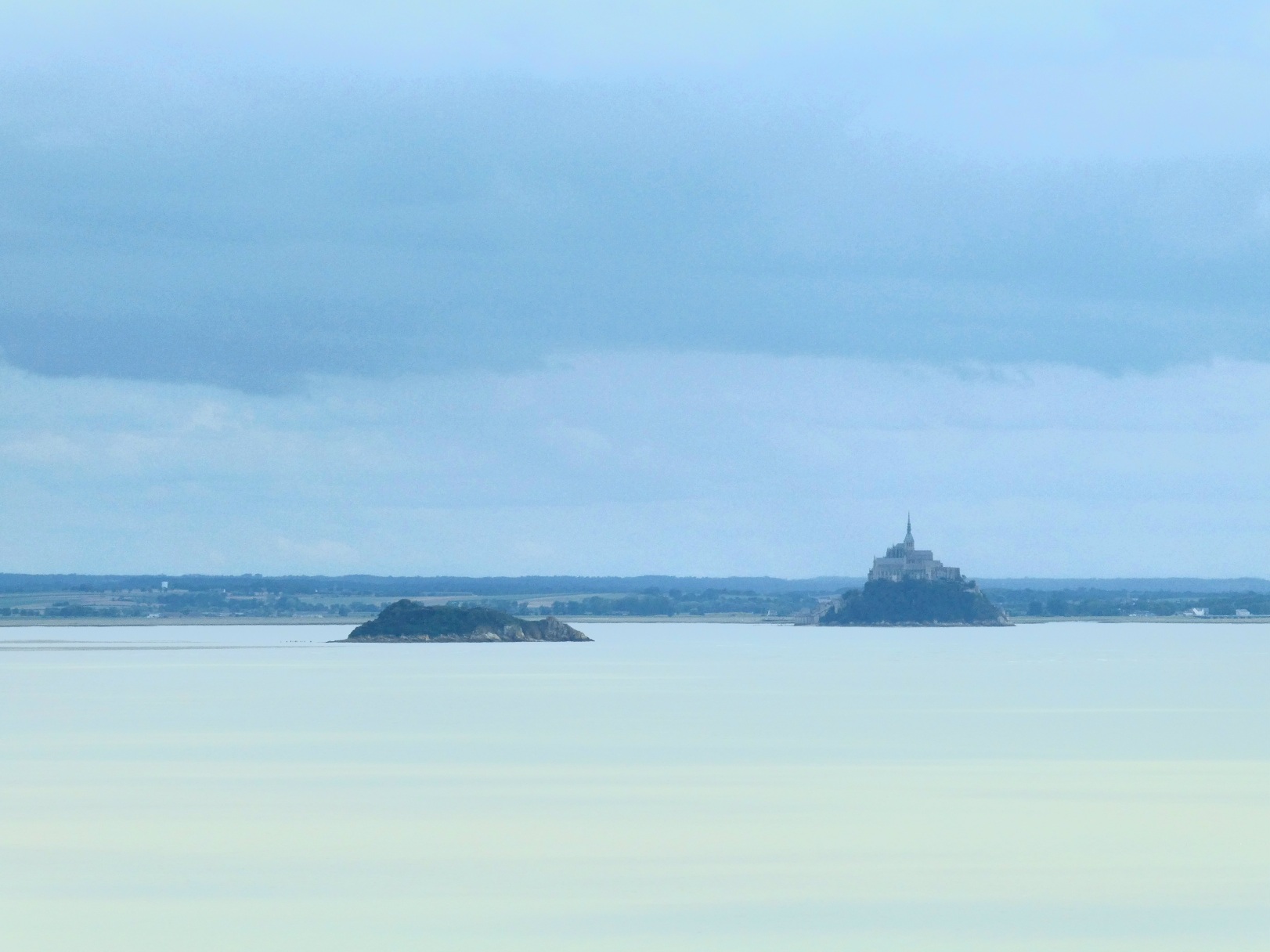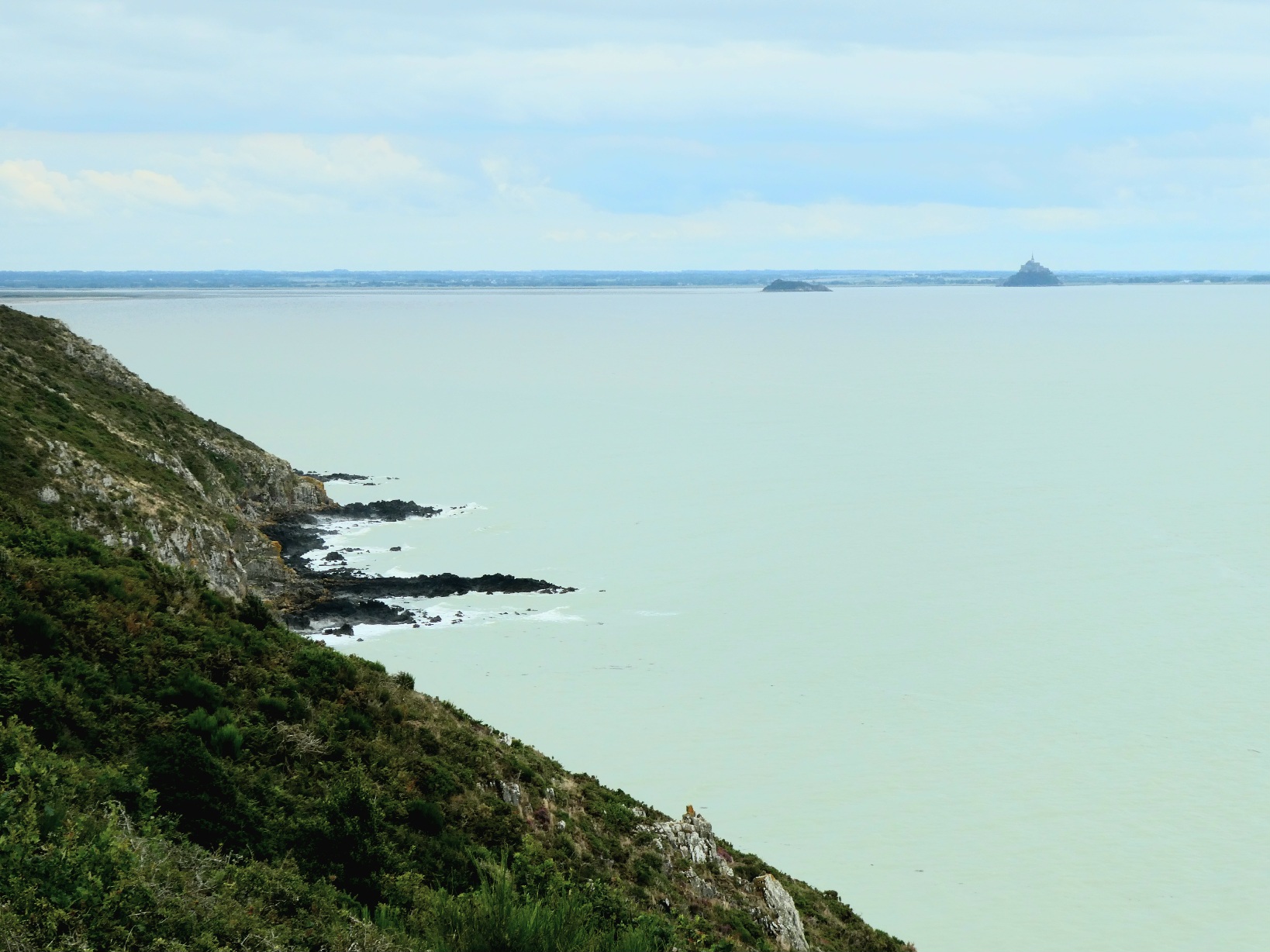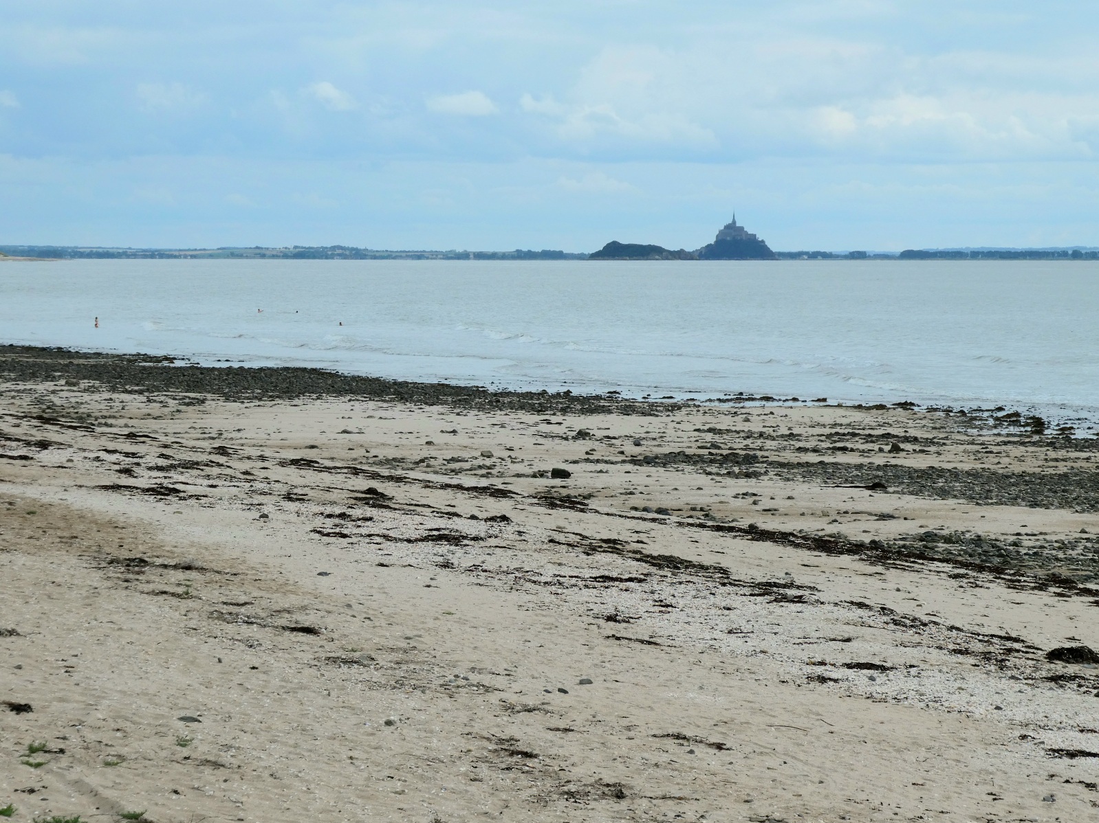 Vanaf de noordoostkant heb je een mooi uitzicht over de baai naar Mont St. Michel. Het kenmerkende silhouet met de abdij bovenop blijft van alle kanten fraai.