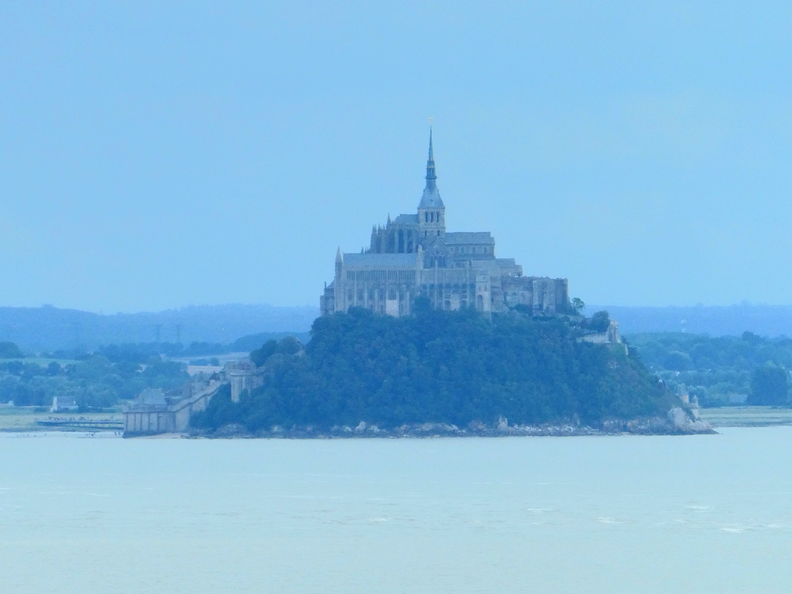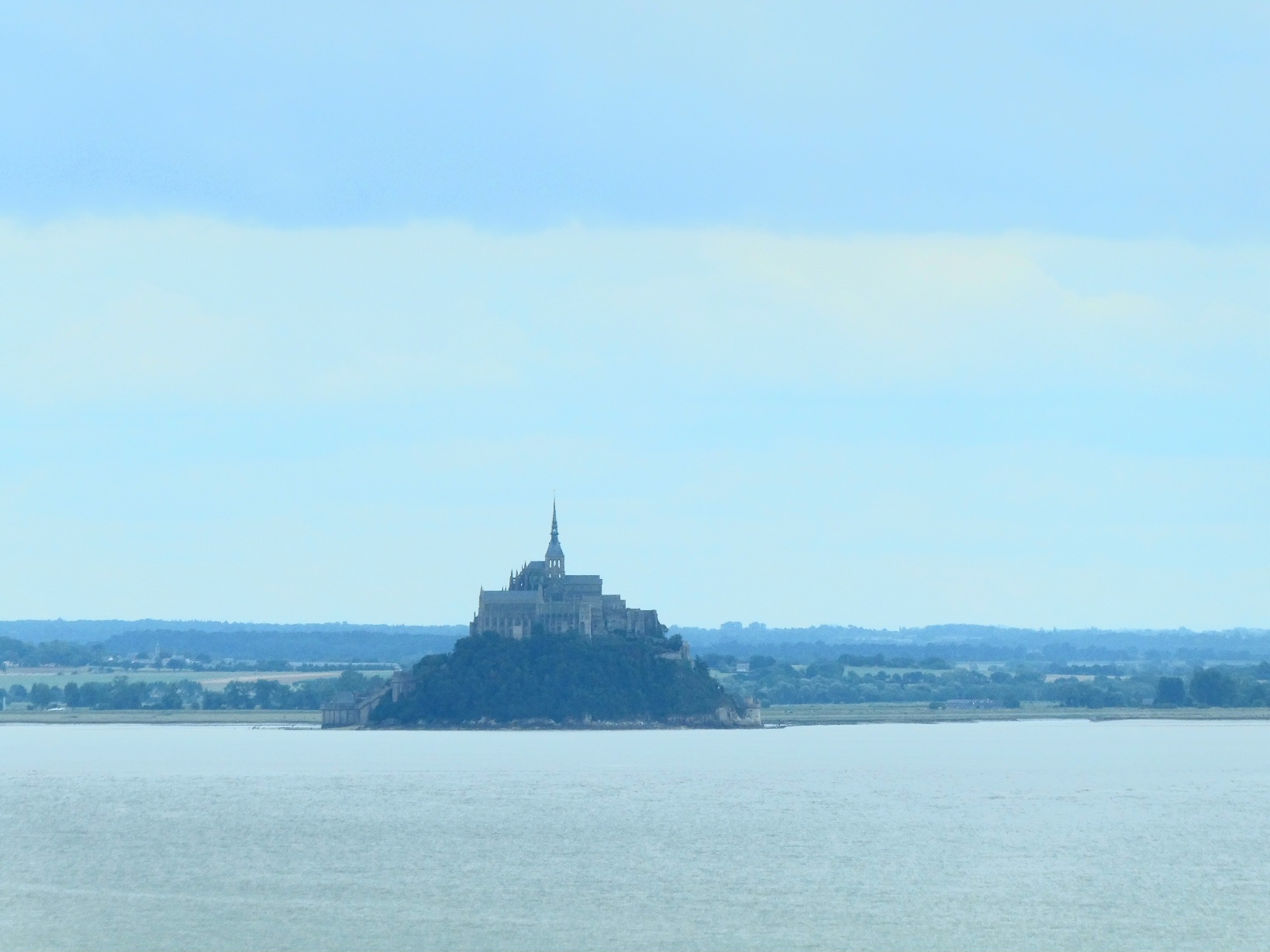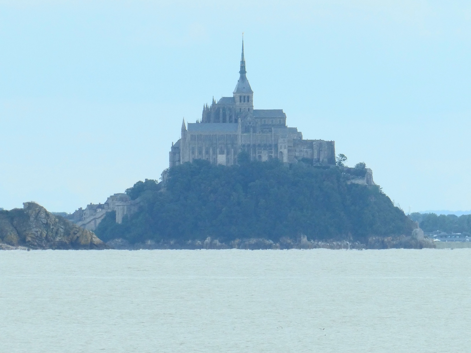 Vanaf de noordoostkant heb je een mooi uitzicht over de baai naar Mont St. Michel. Het kenmerkende silhouet met de abdij bovenop blijft van alle kanten fraai.