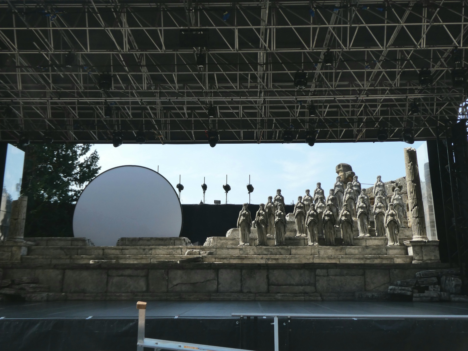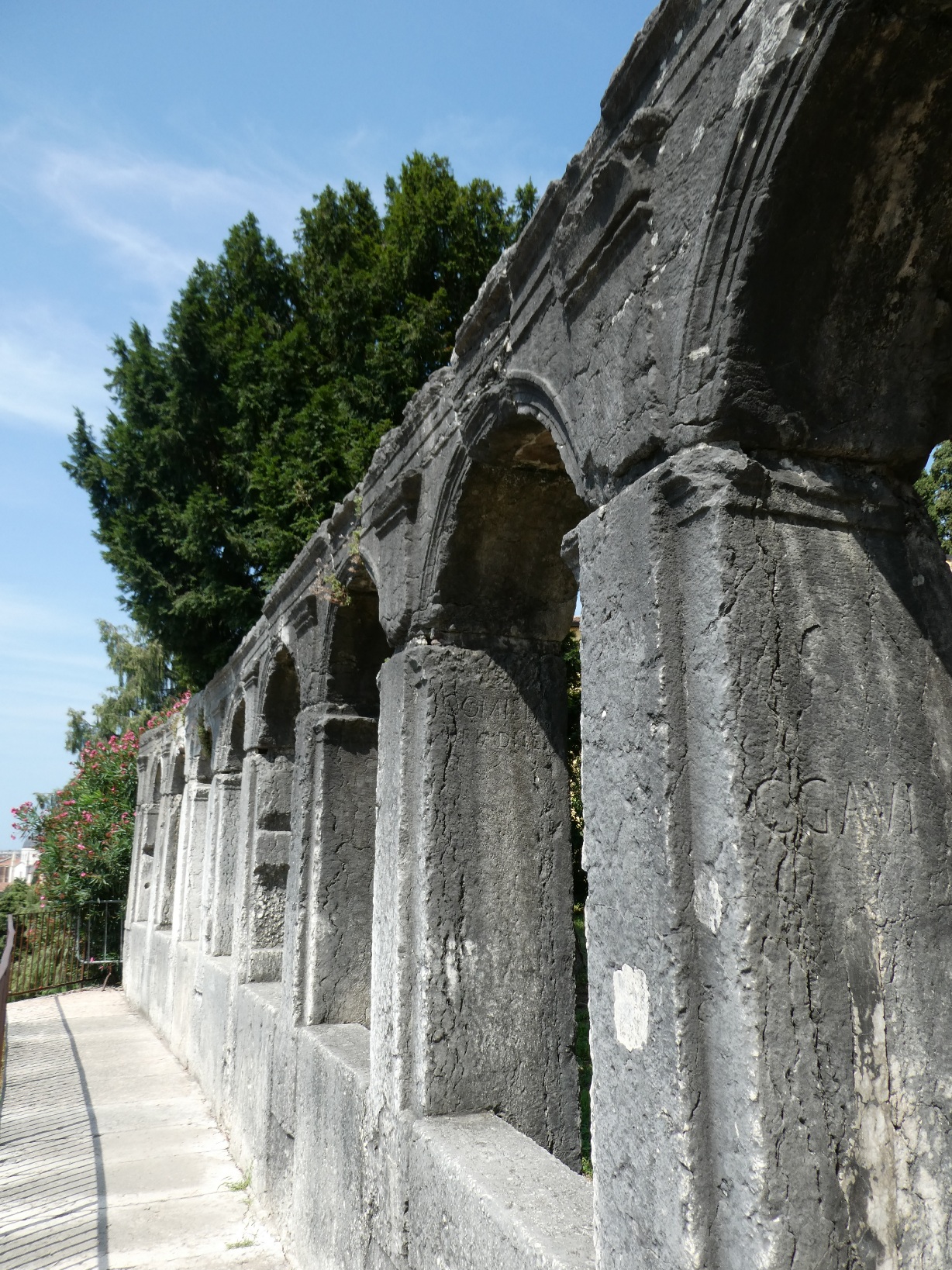 De opgravingen op de flanken zijn wel interessant. Hier lag in de Romeinse tijd, buiten de stadsmuren, het theater. Er staan nog oude muren, maar belangrijker, de zitplaatsen en het toneel zijn nog steeds intact (al is de oude achterwand wel verdwenen) dus er worden nog steeds regelmatig optredens gegeven.