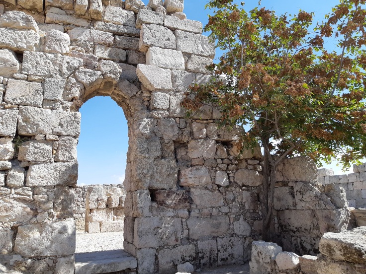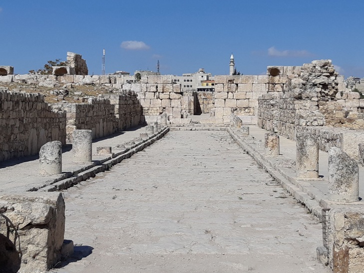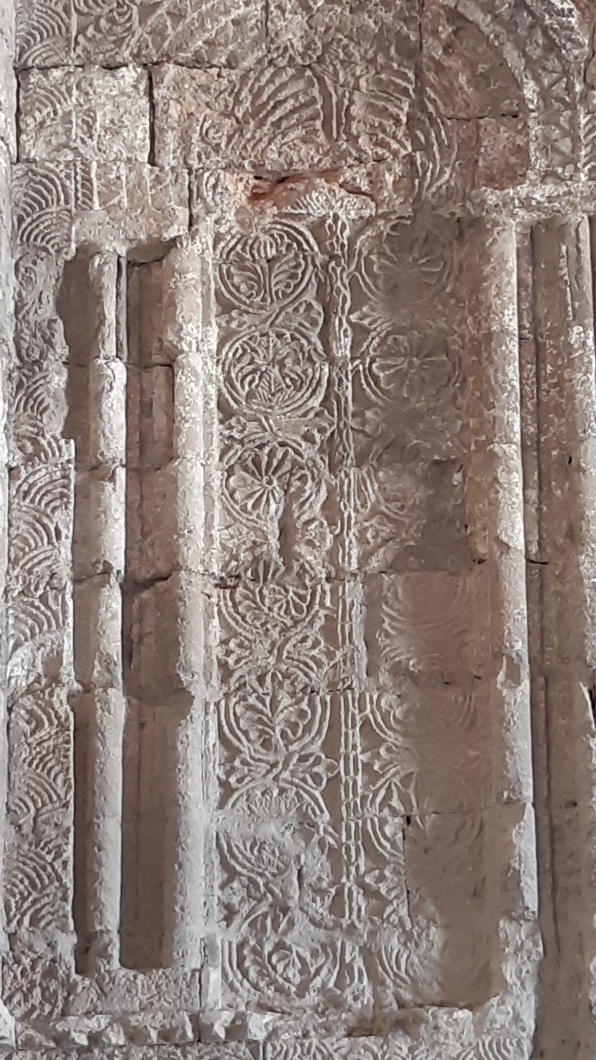 Voor het paleis stond, op een verhoging, de moskee. Met uitzondering van één herbouwde muur is daar nu weinig meer dan de fundering van over.
