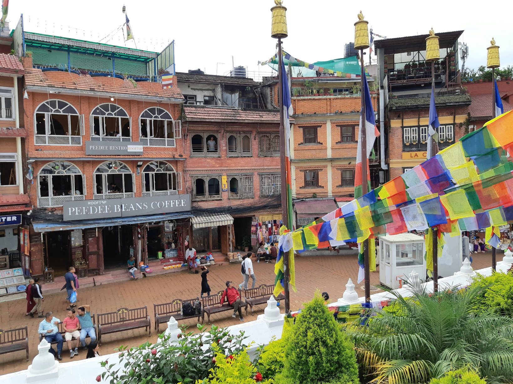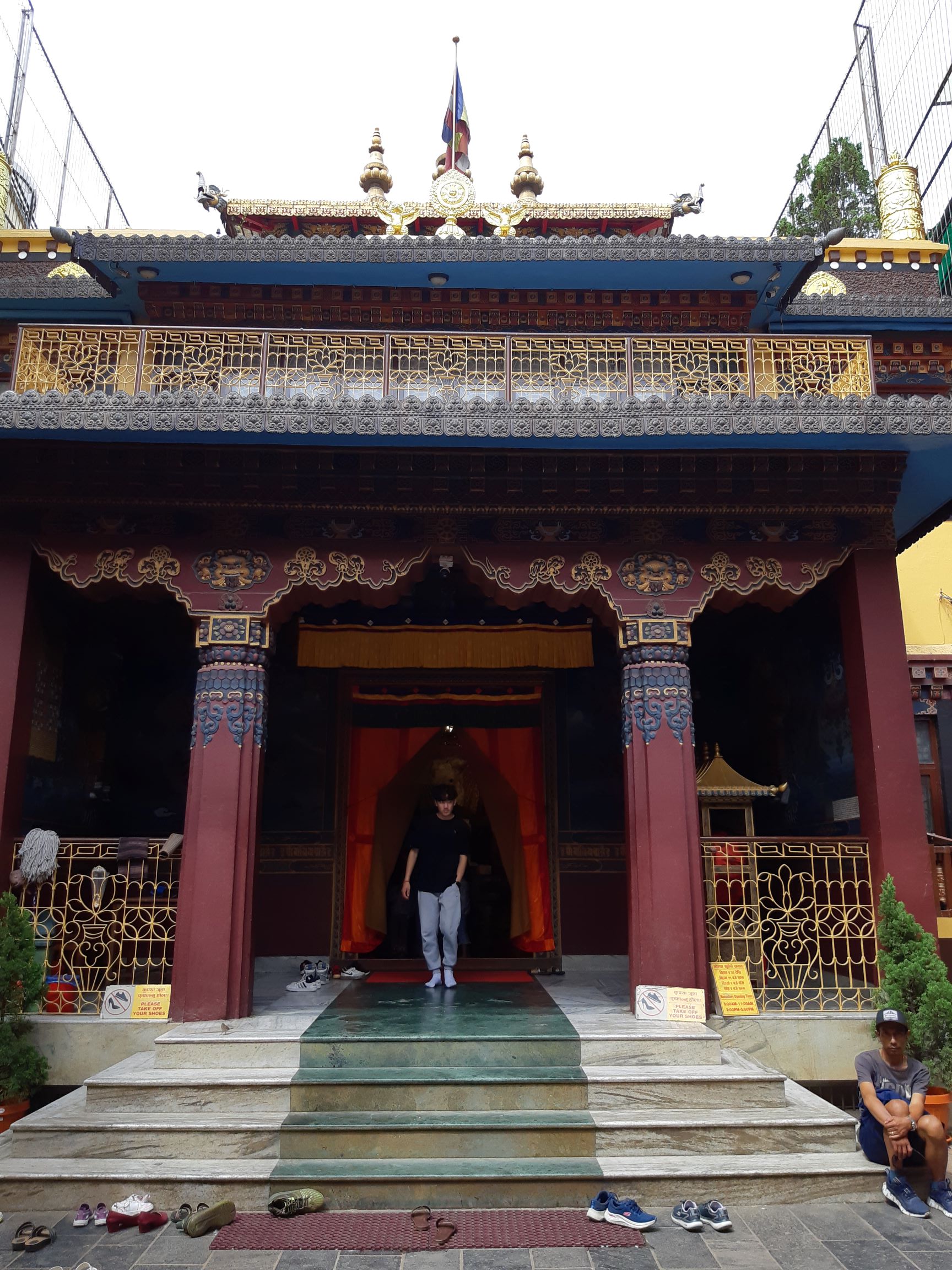 Rondom de tempel loopt een straat (je kunt ook zeggen dat de tempel midden op een plein staat) met daaromheen veel koffietentjes en andere tempels.