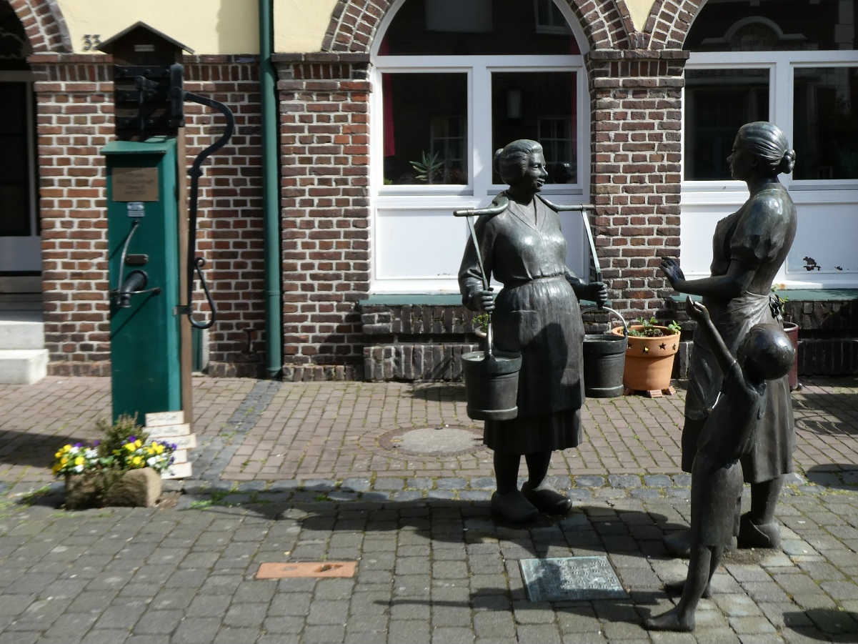 Water speelt een belangrijke rol in de stad. Overal zijn oude waterpompen en -installaties te vinden, vaak met kunstwerken erbij.
