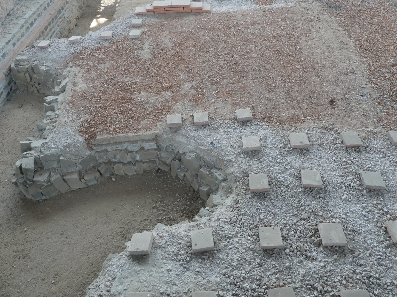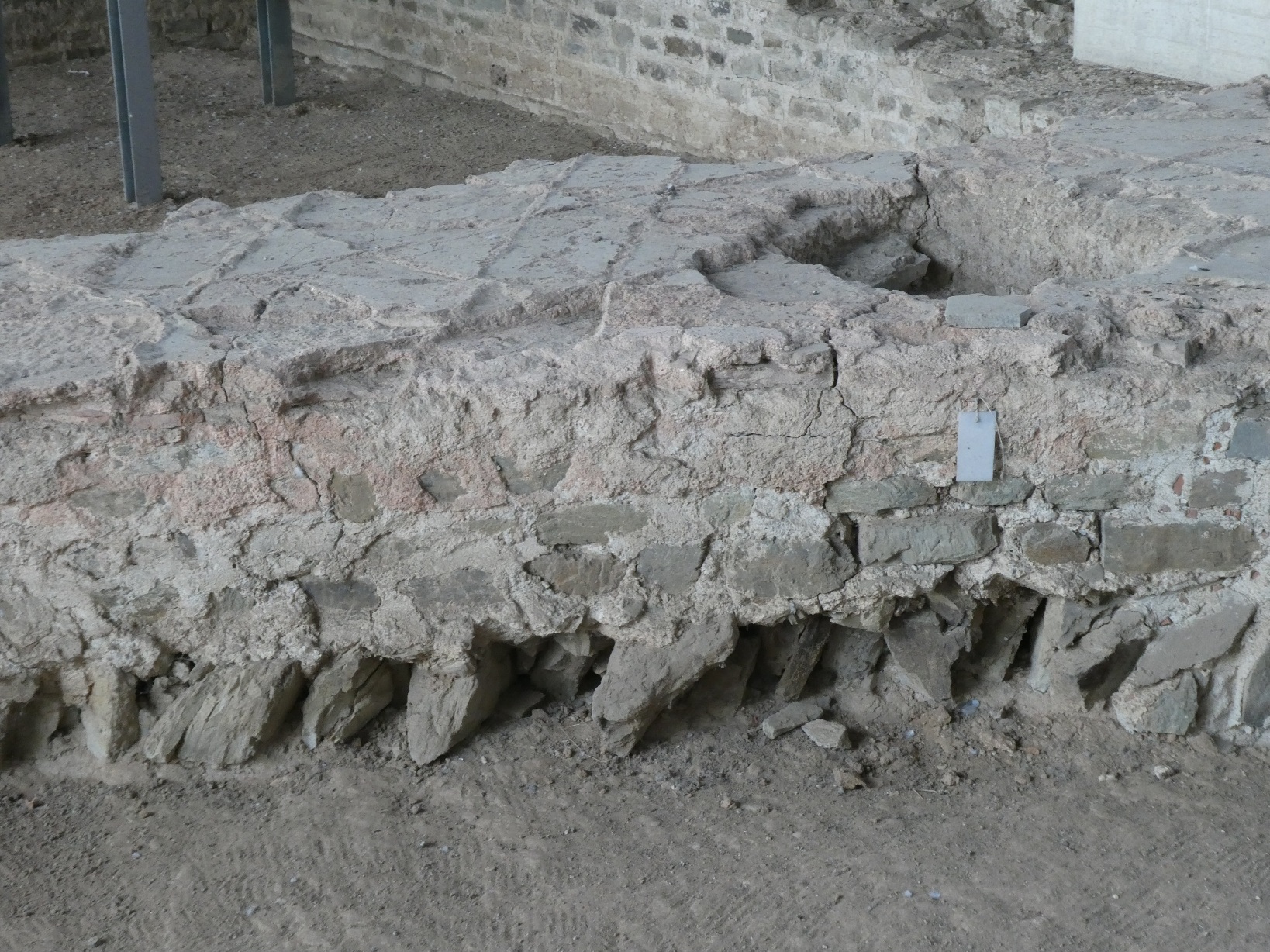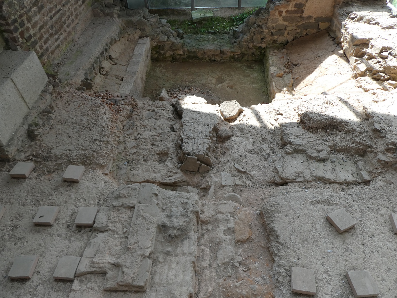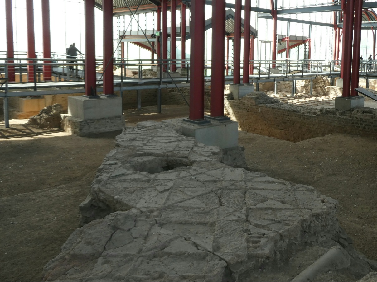 De originele vloerconstructie is nog intact en laat goed zien hoe, door een dubbele vloer, warmte en koude konden stromen en de thermen verwarmden. Zelfs het oude tegelpatroon is nog zichtbaar.