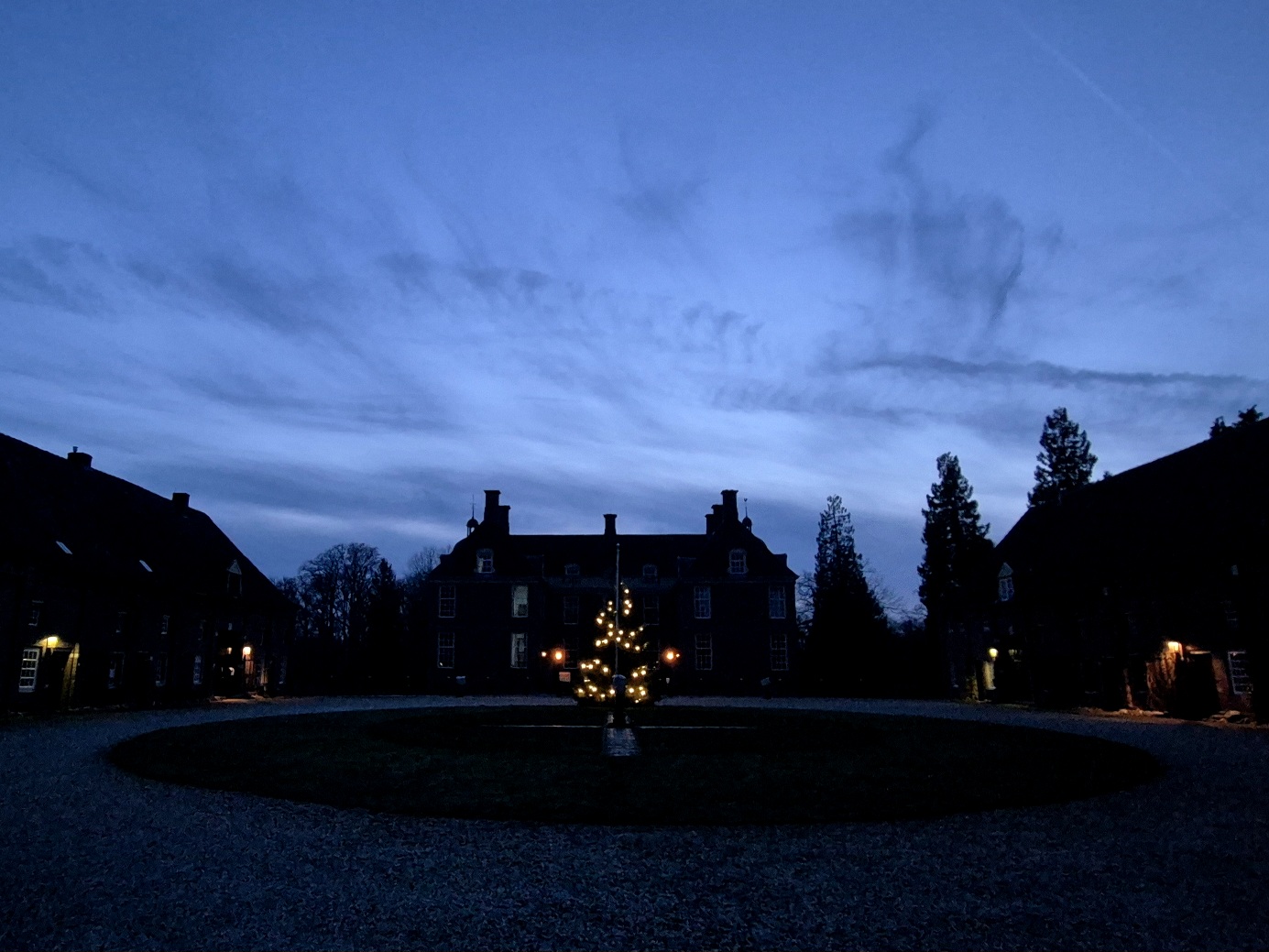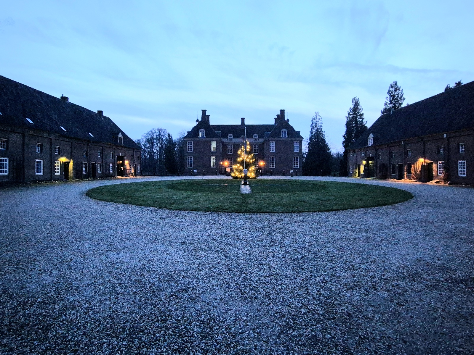 Voor Kasteel Slangenburg is een groot plein, waar twee andere gebouwen staan, die vroeger dienden als koetshuis, orangerie, werkplaatsen. Nu is in het ene gebouw een restaurant gevestigd, het andere biedt onderdak aan drie “kasteelhuisjes“, waar je kunt overnachten. Wij verbleven in één van de huisjes, zeer aan te raden. Daardoor kregen we ook een mooi zicht op de nachtelijke verlichting.