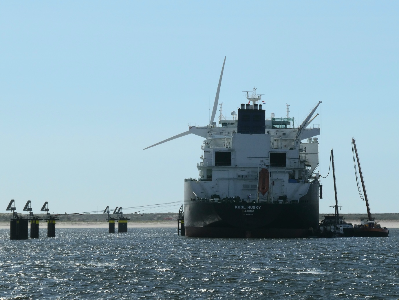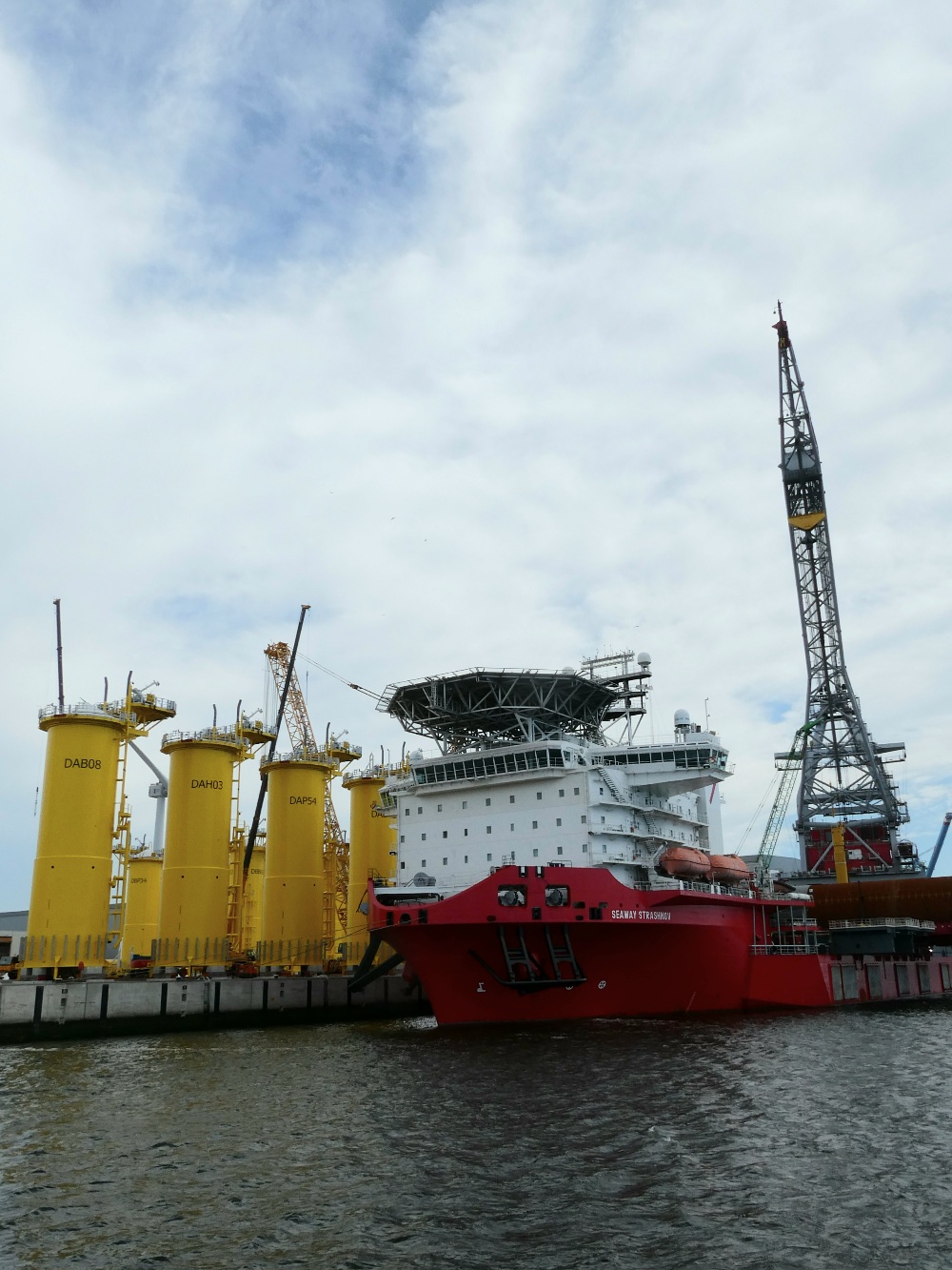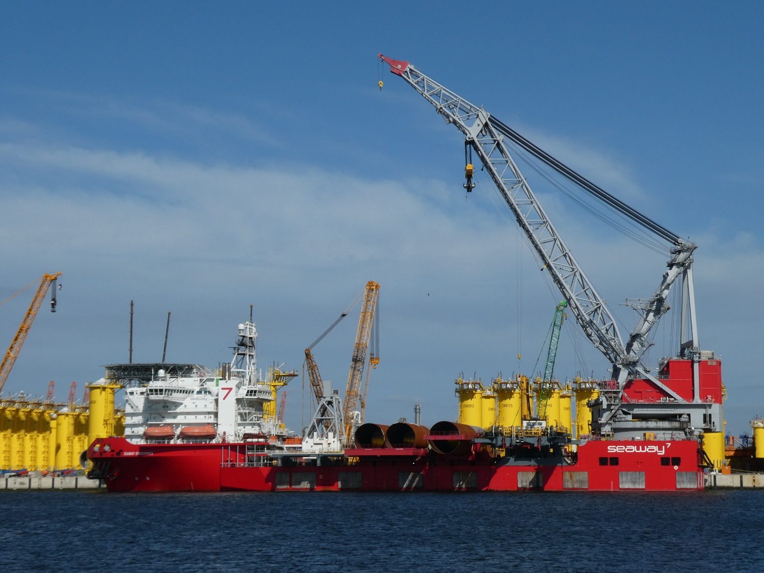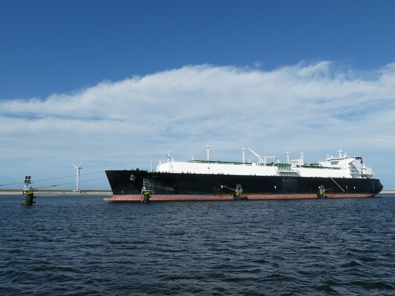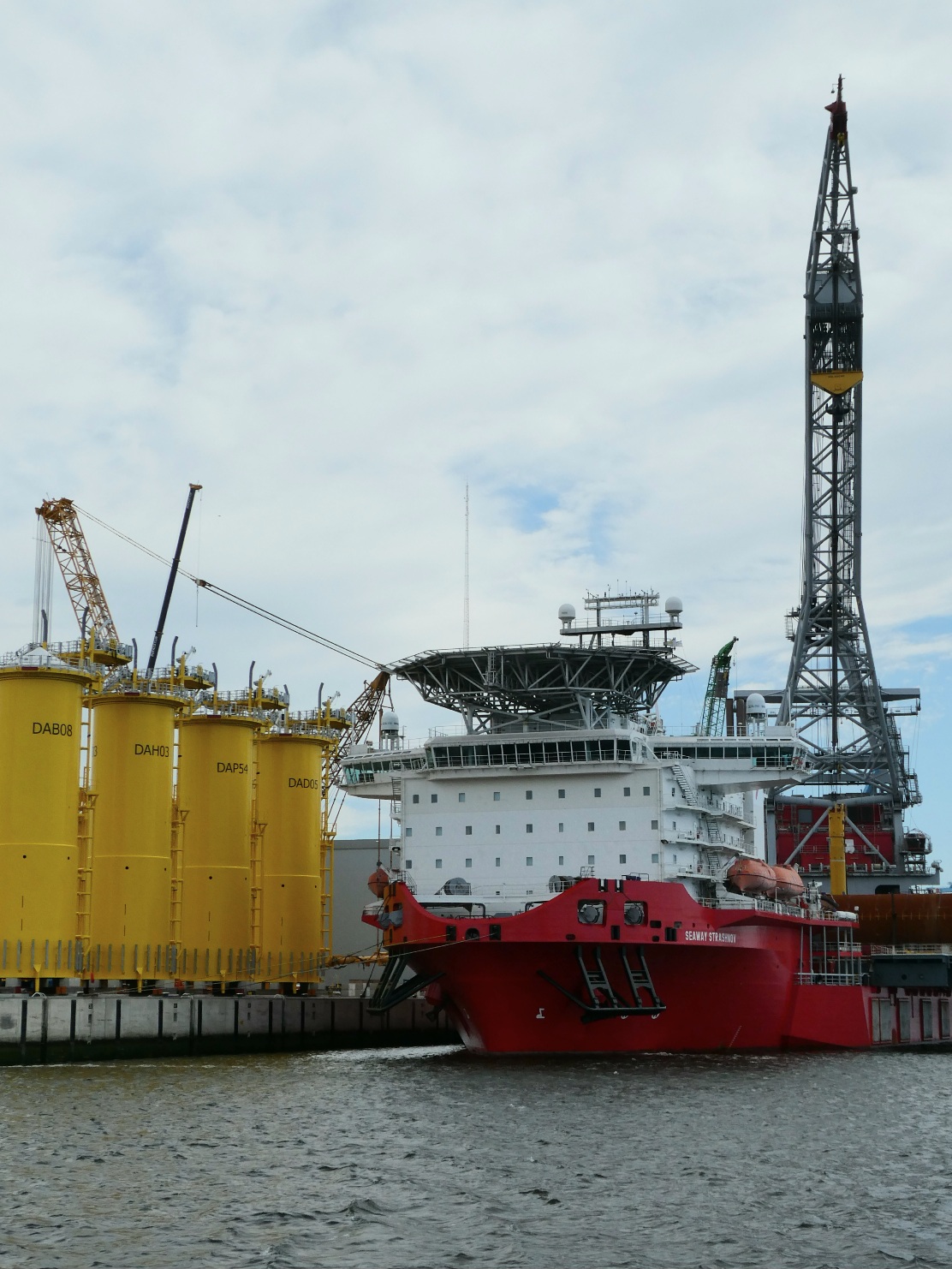 Hier liggen ook schepen voor anker, te wachten op onderhoud of nieuwe lading.