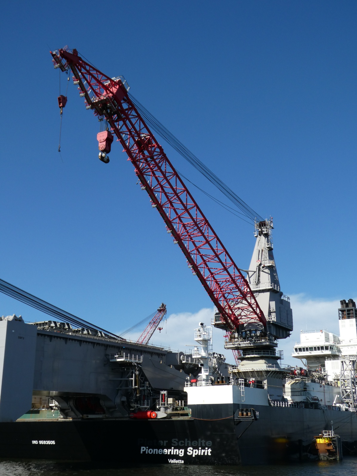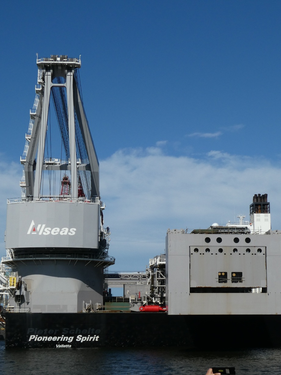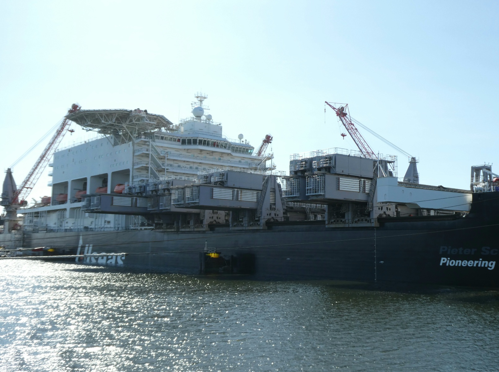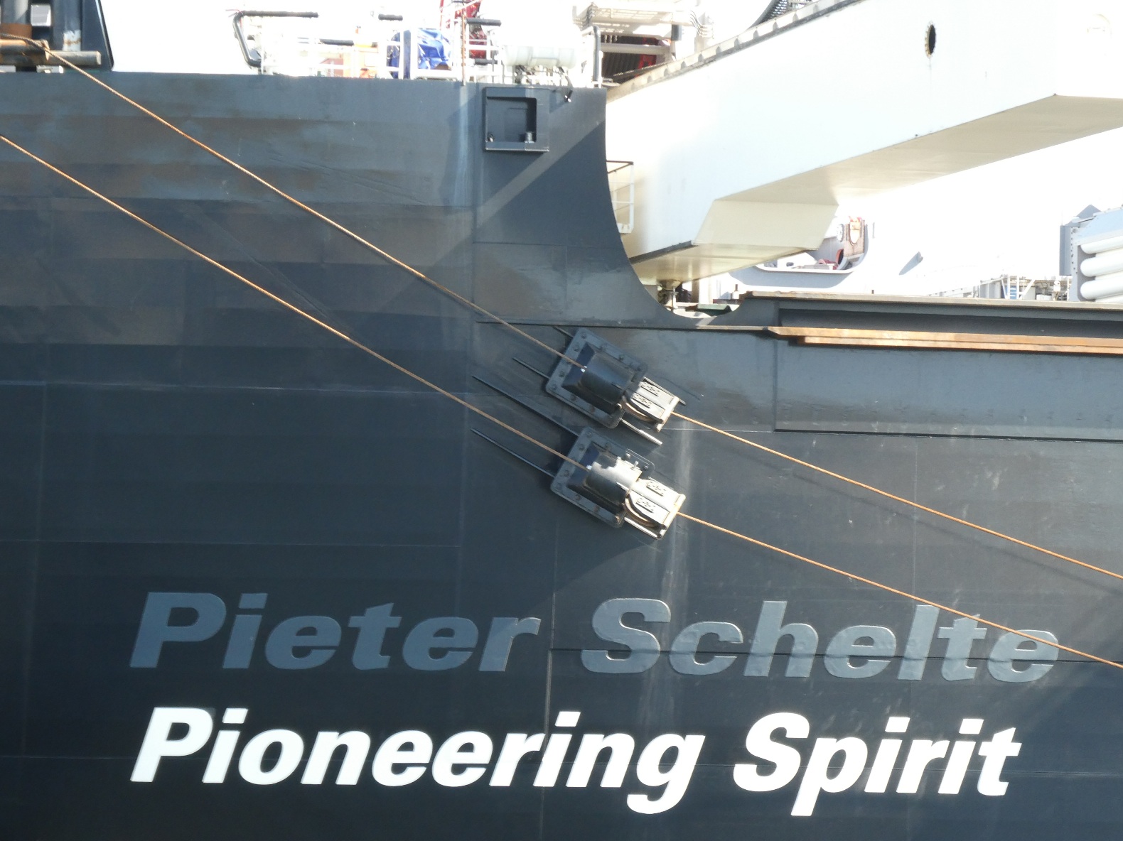 Ook het grootste schip ter wereld, vroeger Pieter Schelte genaamd, nu Pionering Spirit, moet onderhouden worden, en dat kan uitstekend in de haven van de Maasvlakte. Een imposant gezicht als je er met een bootje omheen vaart.