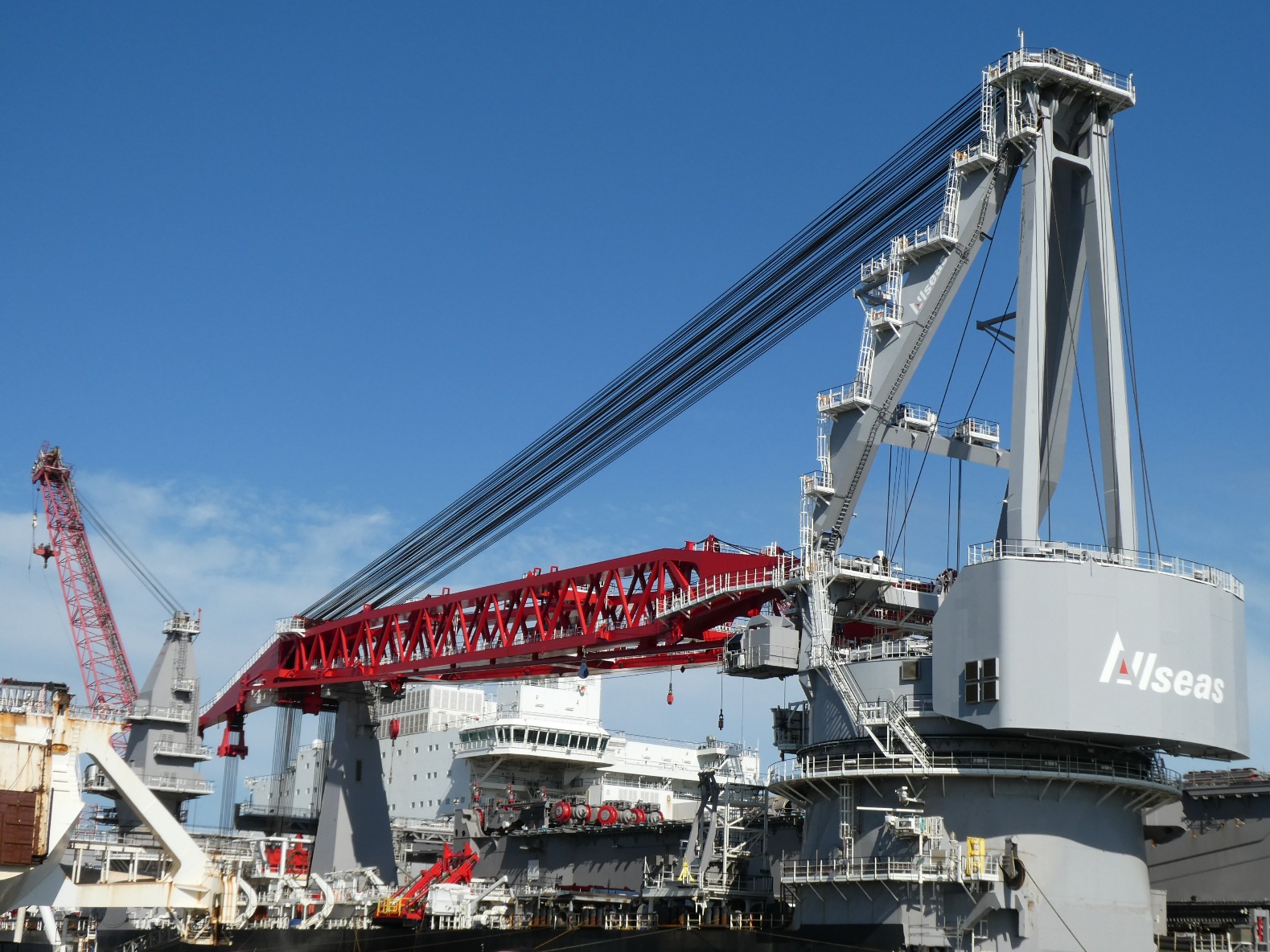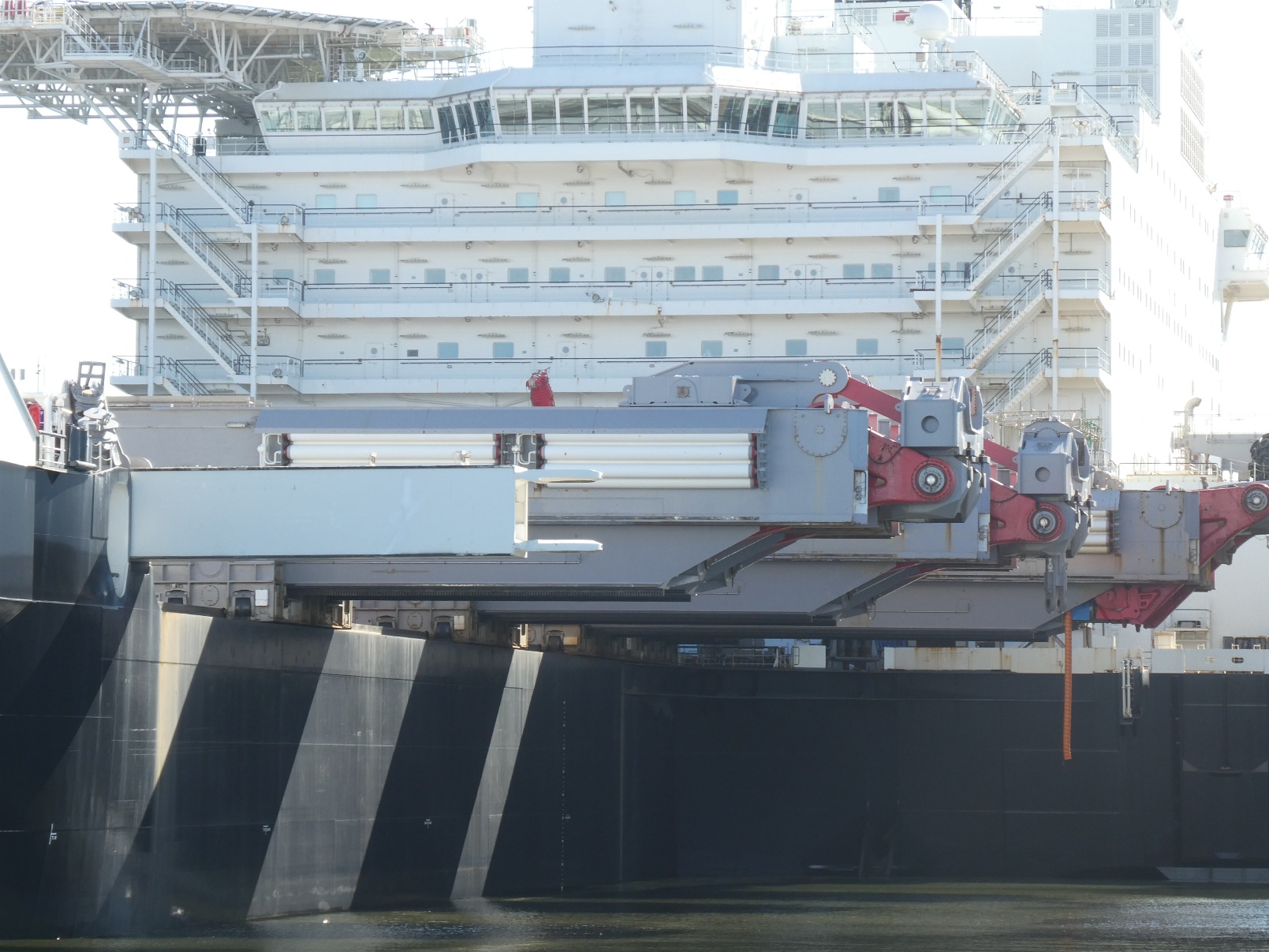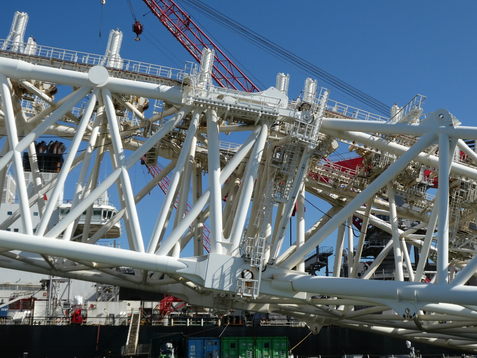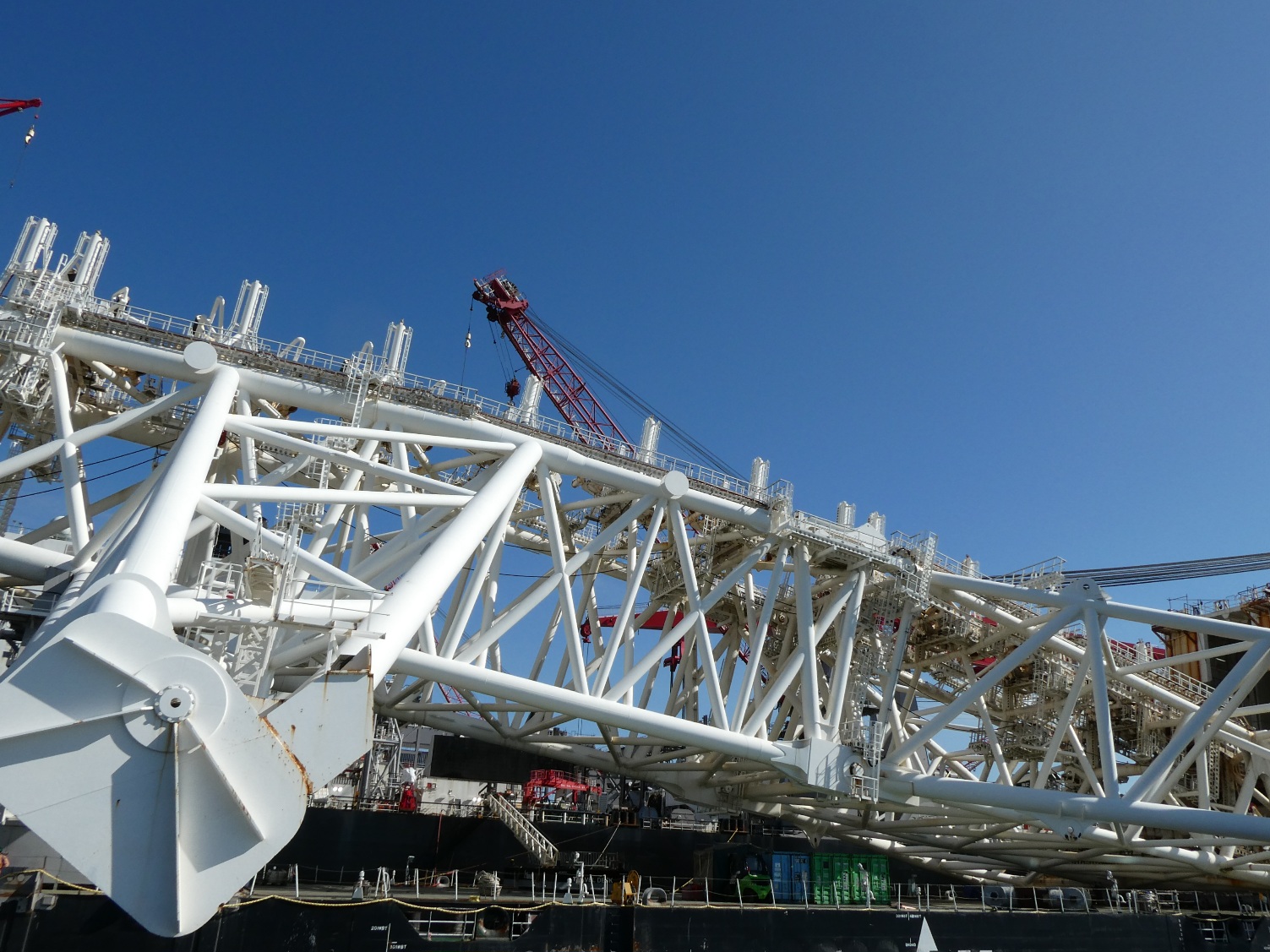 Ook het grootste schip ter wereld, vroeger Pieter Schelte genaamd, nu Pionering Spirit, moet onderhouden worden, en dat kan uitstekend in de haven van de Maasvlakte. Een imposant gezicht als je er met een bootje omheen vaart.
