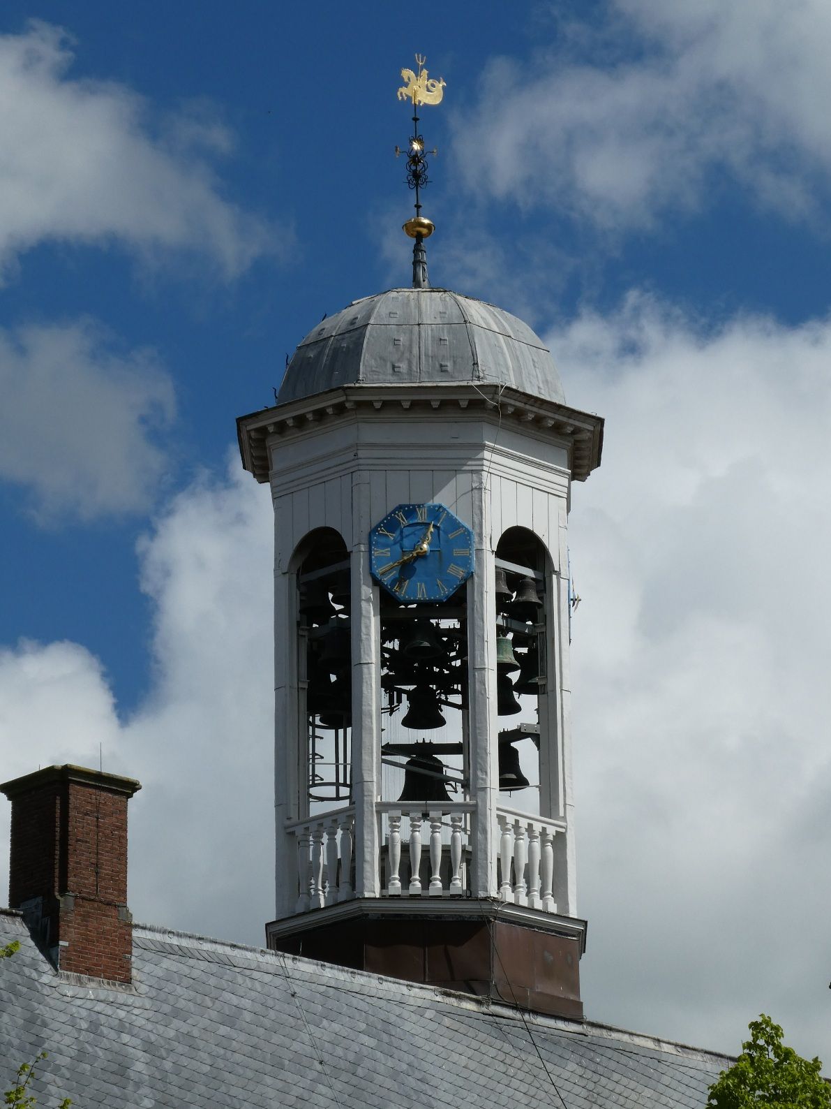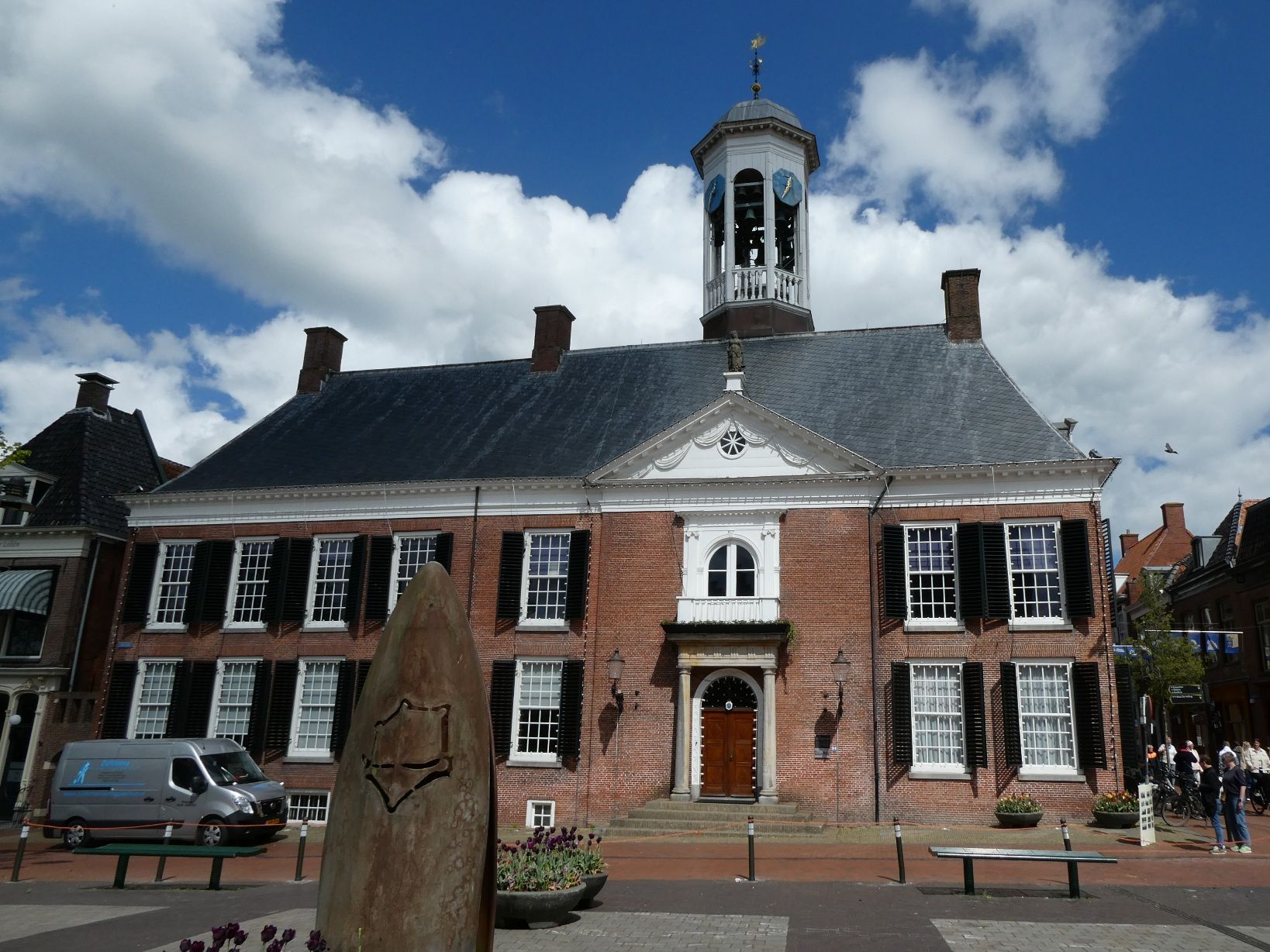 Het Stadhuis uit 1610 staat vlakbij het keerpunt, midden in Dokkum, en is nog steeds in gebruik.
