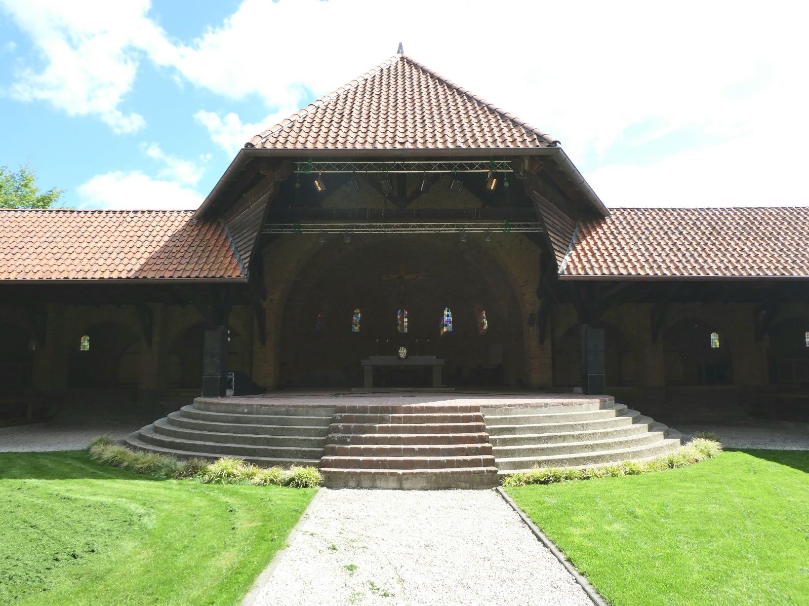 De Bonifatiuskapel zelf is gebouwd in 1934, in de vorm van een romeins amfitheater. De kapel en de zitplaatsen zijn overdekt, maar het “lichthof” in het midden is dat niet. Zo blijft de verbinding met de natuur in stand.