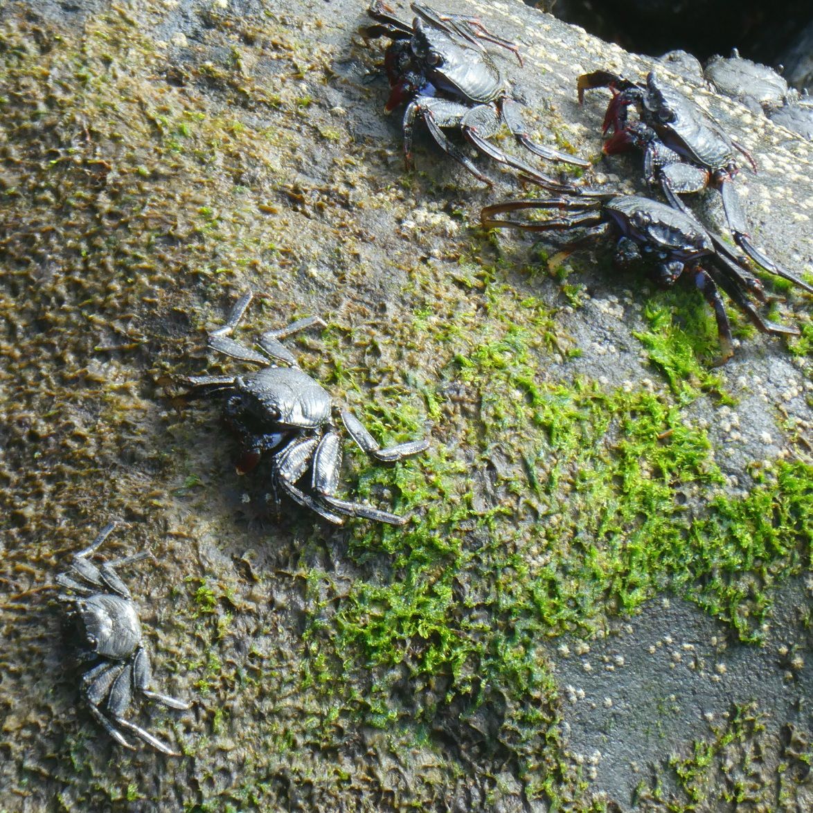 Over het hele stuk lopen de krabbetjes over de rotsen.