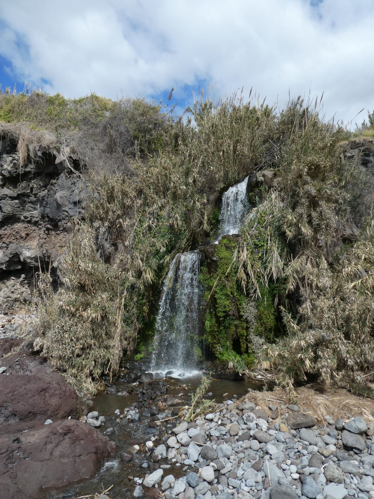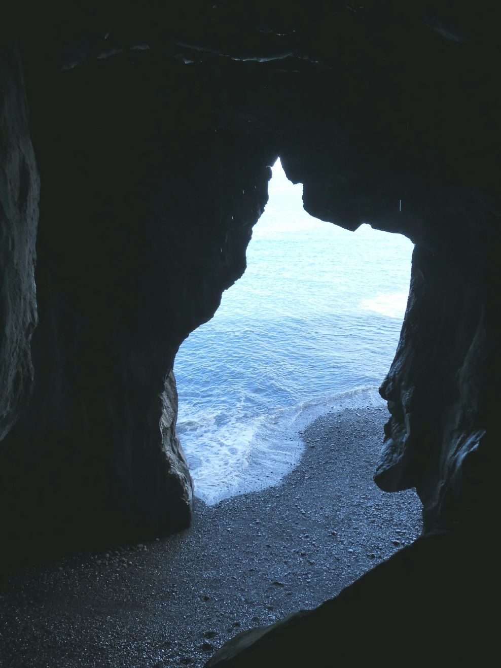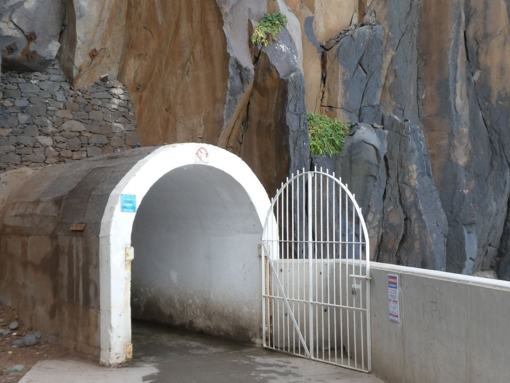 Aan het eind van de promenade is een tunnel, één van de vele op Madeira, die weer uitkomt op een strand, het Praia Formosa. Halverwege kun je door een gat in de tunnelwand de zee weer zien.