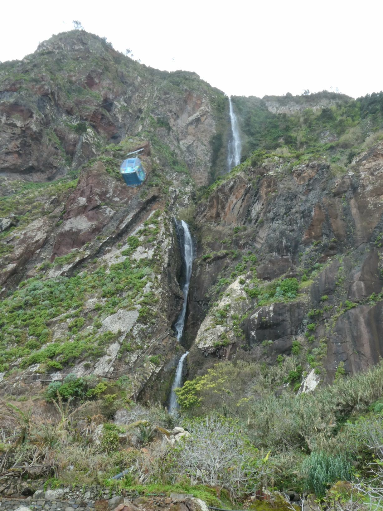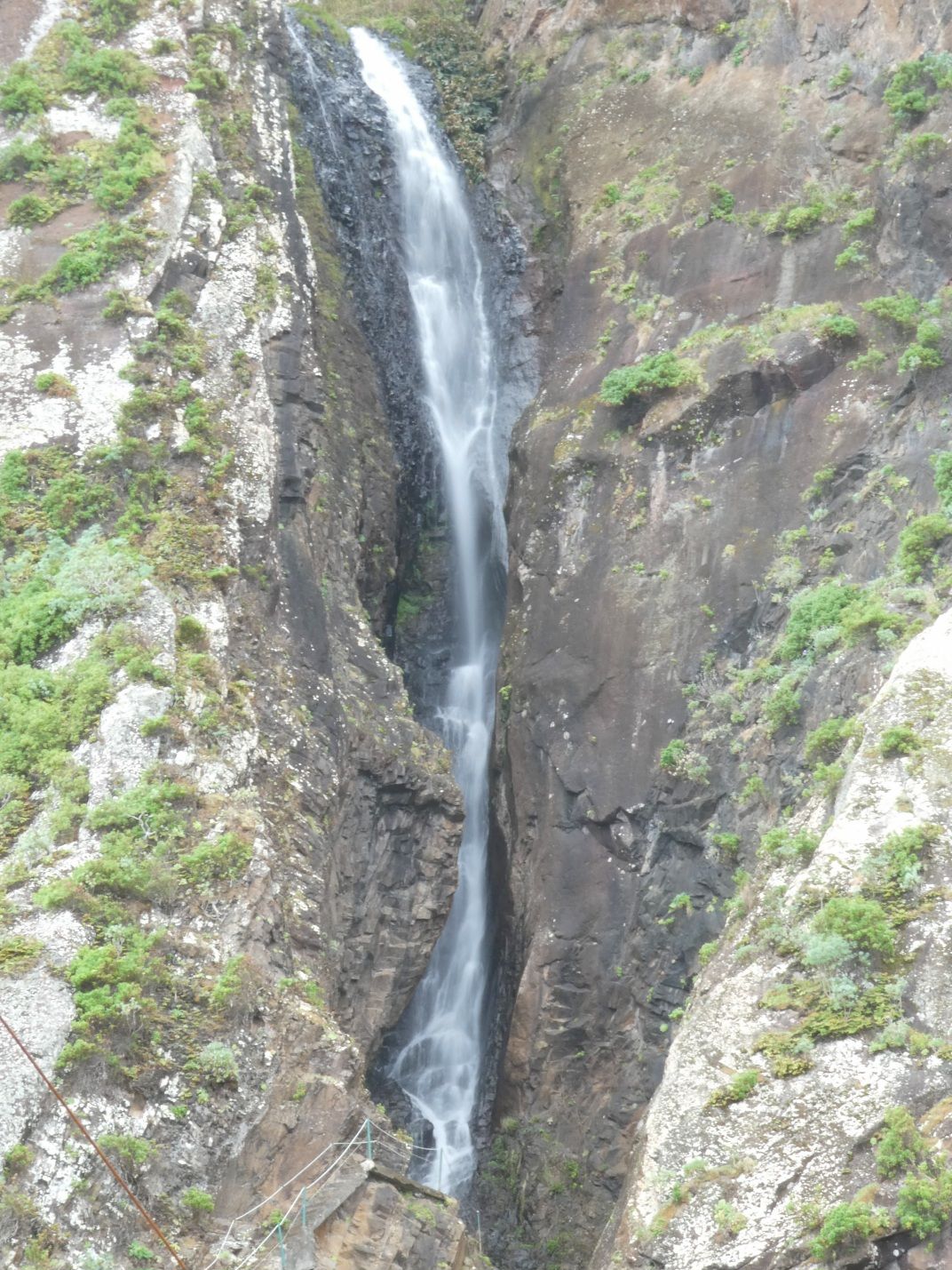 Onderweg heb je mooi uitzicht, eerst in de diepte van de klif, dan op de watervallen die van de klif afstorten.