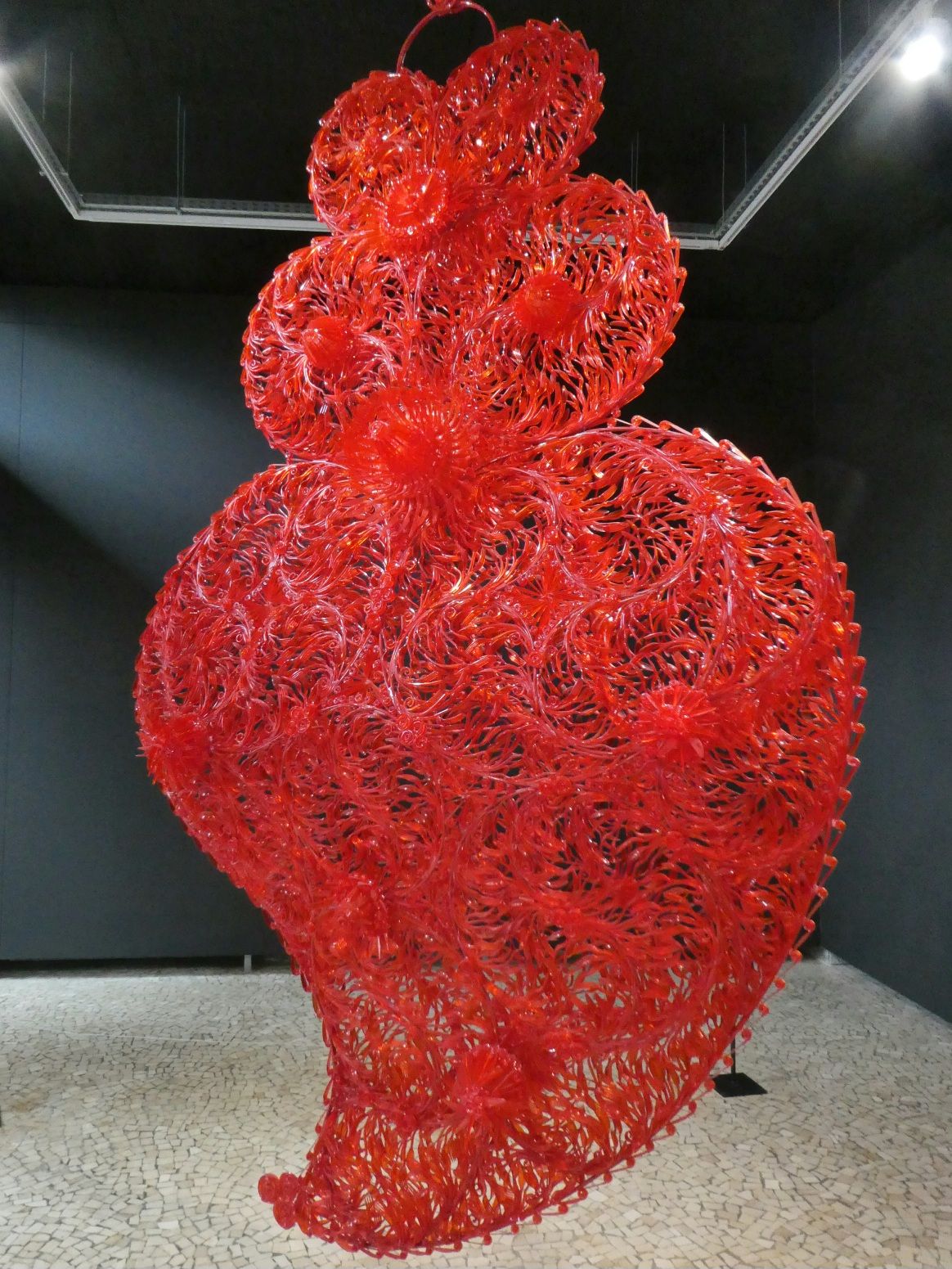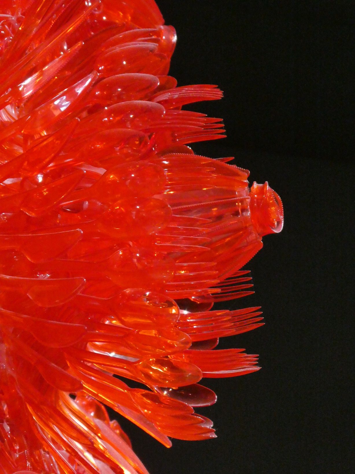 Een vreselijk kitscherig rood plastic hart. Tot je beter kijkt en het volledig gemaakt blijkt van bestek; messen vorken en lepels in allerlei vormen gebogen en samengevoegd: