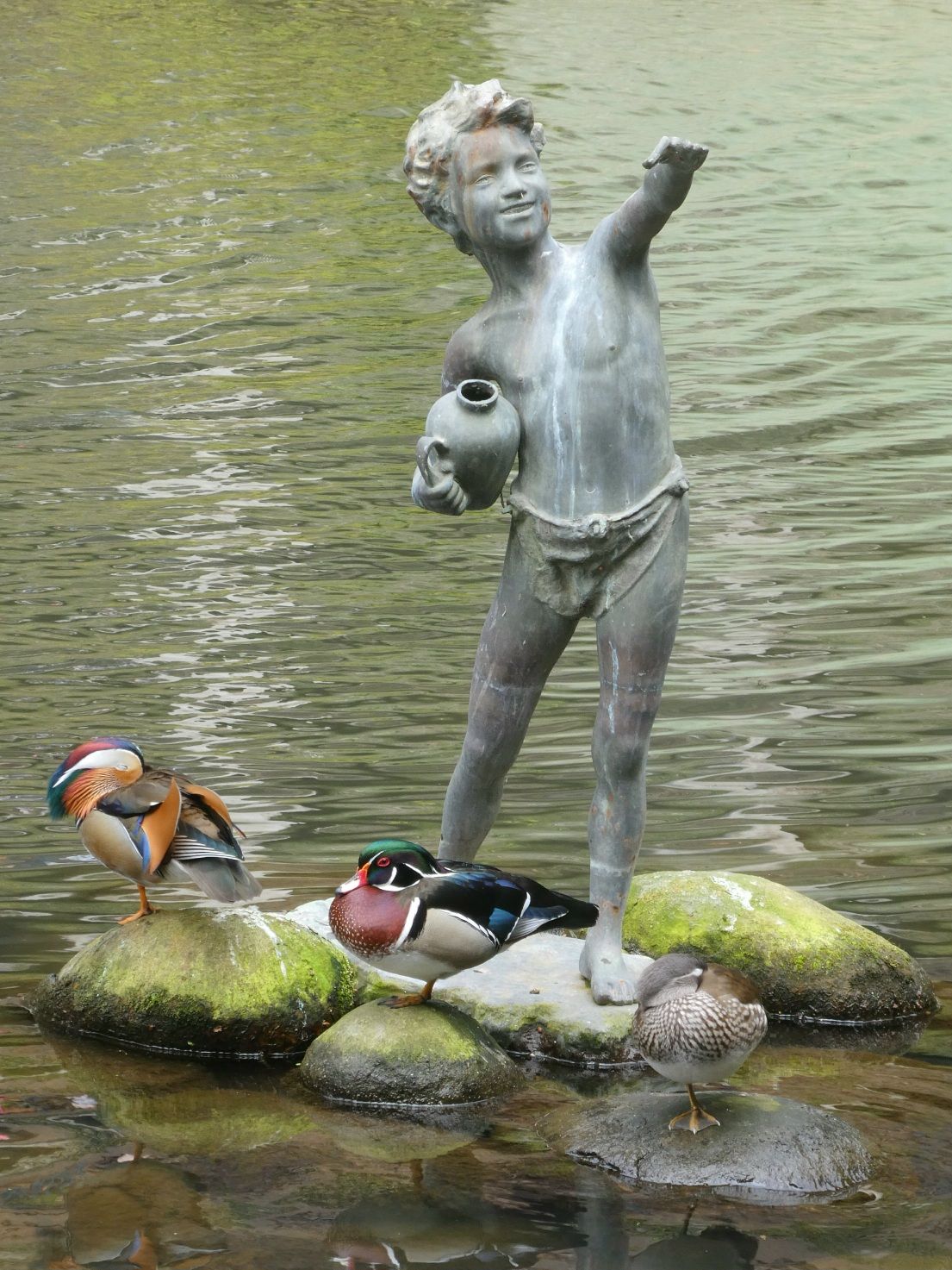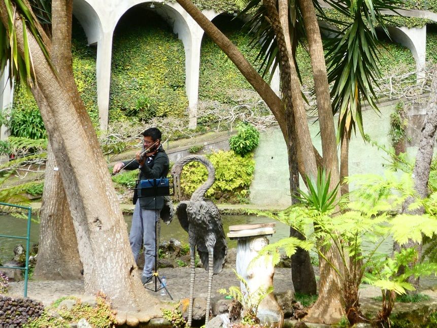 En zelfs muziek is er te vinden: vioolconcert op één van de eilandjes in de vijver: